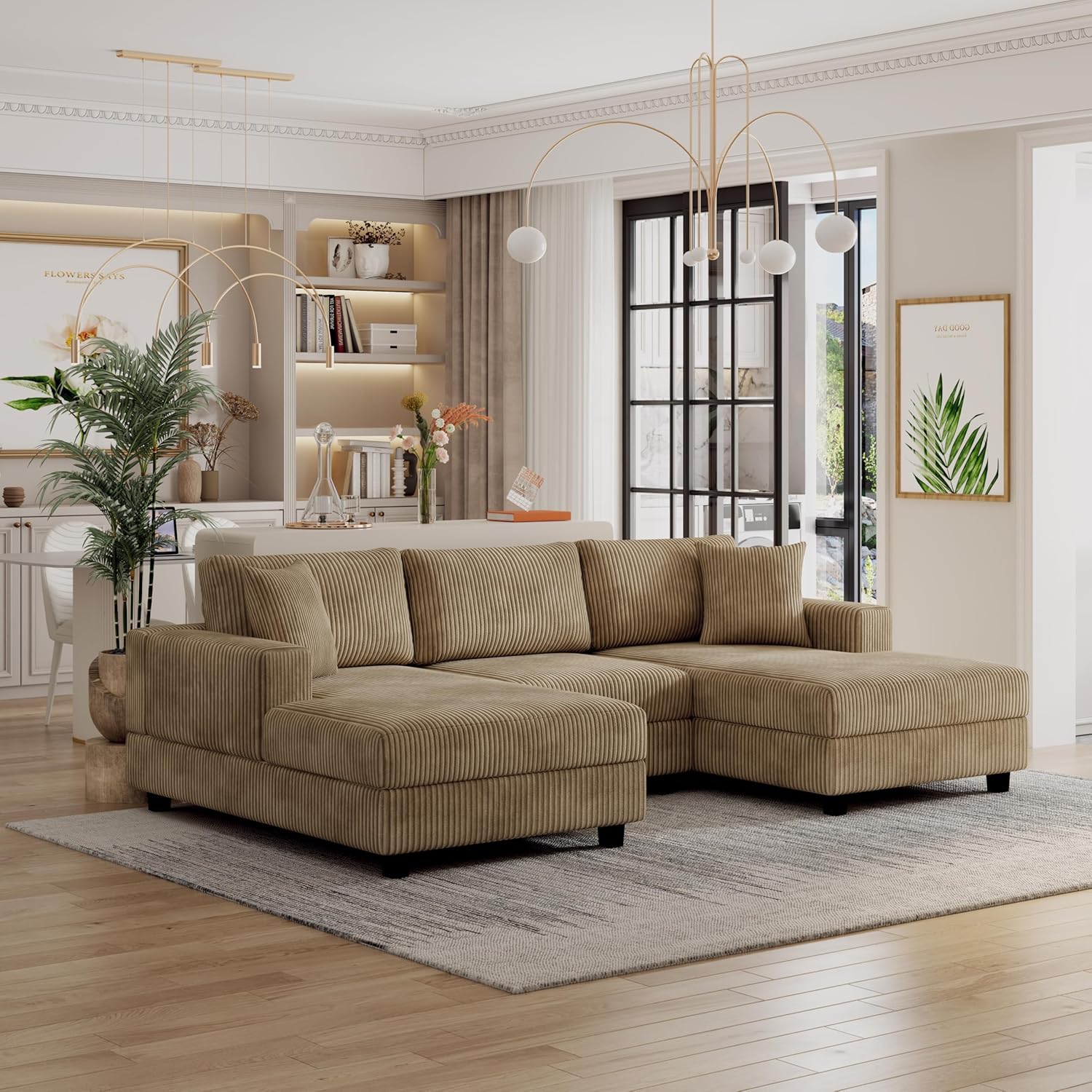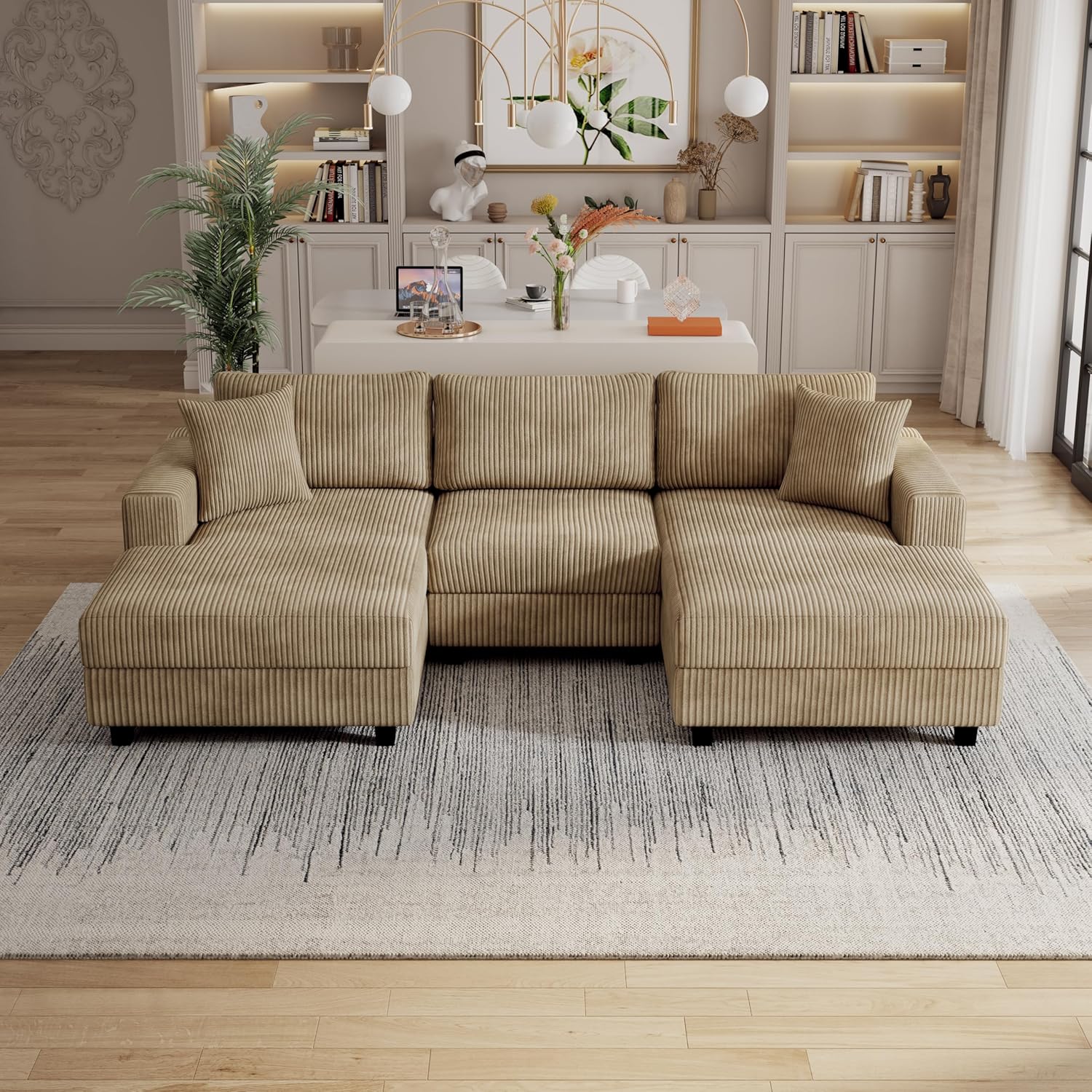 - Corduroy Sectional Couch: The oversized sectional sofa is made of soft and comfy corduroy fabric, which is not only soft and skin-friendly, but also warm and comfortable. Sitting on it is like being wrapped in a cloud, allowing your tired body to get endless relaxation after a day of hard work. You can lie on our oversized chaise lounge to read books, watch TV or take a nap, and you will feel very comfortable