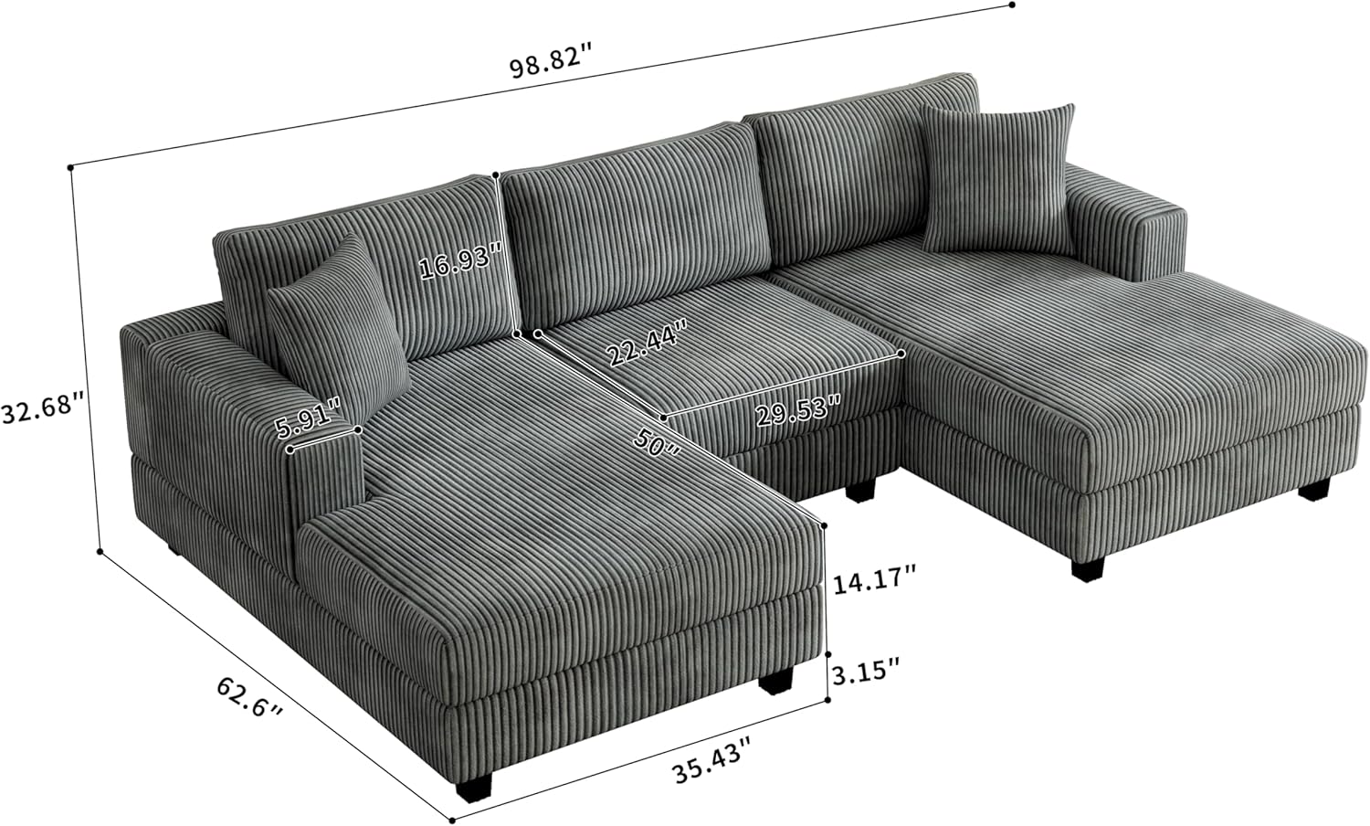 - Easy to Assemble Corner Modular Sectional Couch & 3 Packages :overall sofa size :98.82"*62.6"*32.68"H.The sofa comes with clear installation instructions, so following the steps in the manual makes it easy to complete the installation .This product comes in 3 packages, we will send 3 packages at the same time, please make sure you receive all 3 packages before installing!