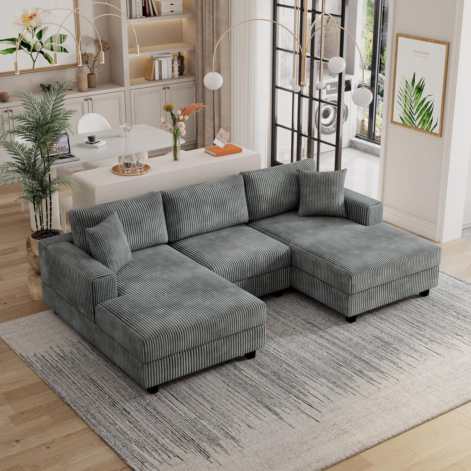 - Corduroy Sectional Couch: The oversized sectional sofa is made of soft and comfy corduroy fabric, which is not only soft and skin-friendly, but also warm and comfortable. Sitting on it is like being wrapped in a cloud, allowing your tired body to get endless relaxation after a day of hard work. You can lie on our oversized chaise lounge to read books, watch TV or take a nap, and you will feel very comfortable