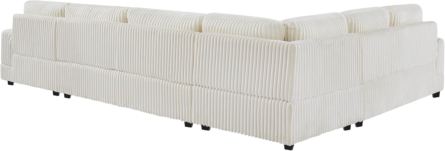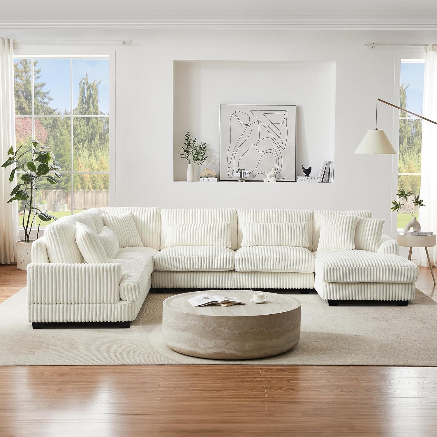 129" Oversized U Shaped Modular Sectional Sofa Couch for Living Room 7 Seater Plush Corduroy Upholstered Large Sofa Deep Seat Cloud Couch with Extra Wide Chaise Lounge and Detachable Thick Cushions