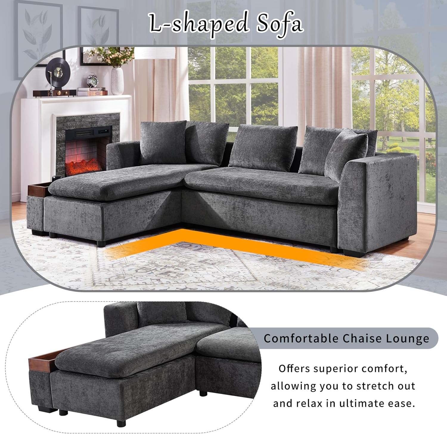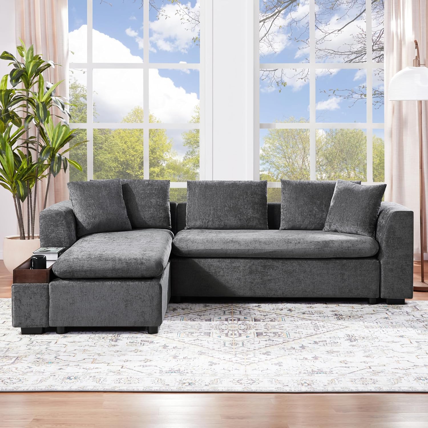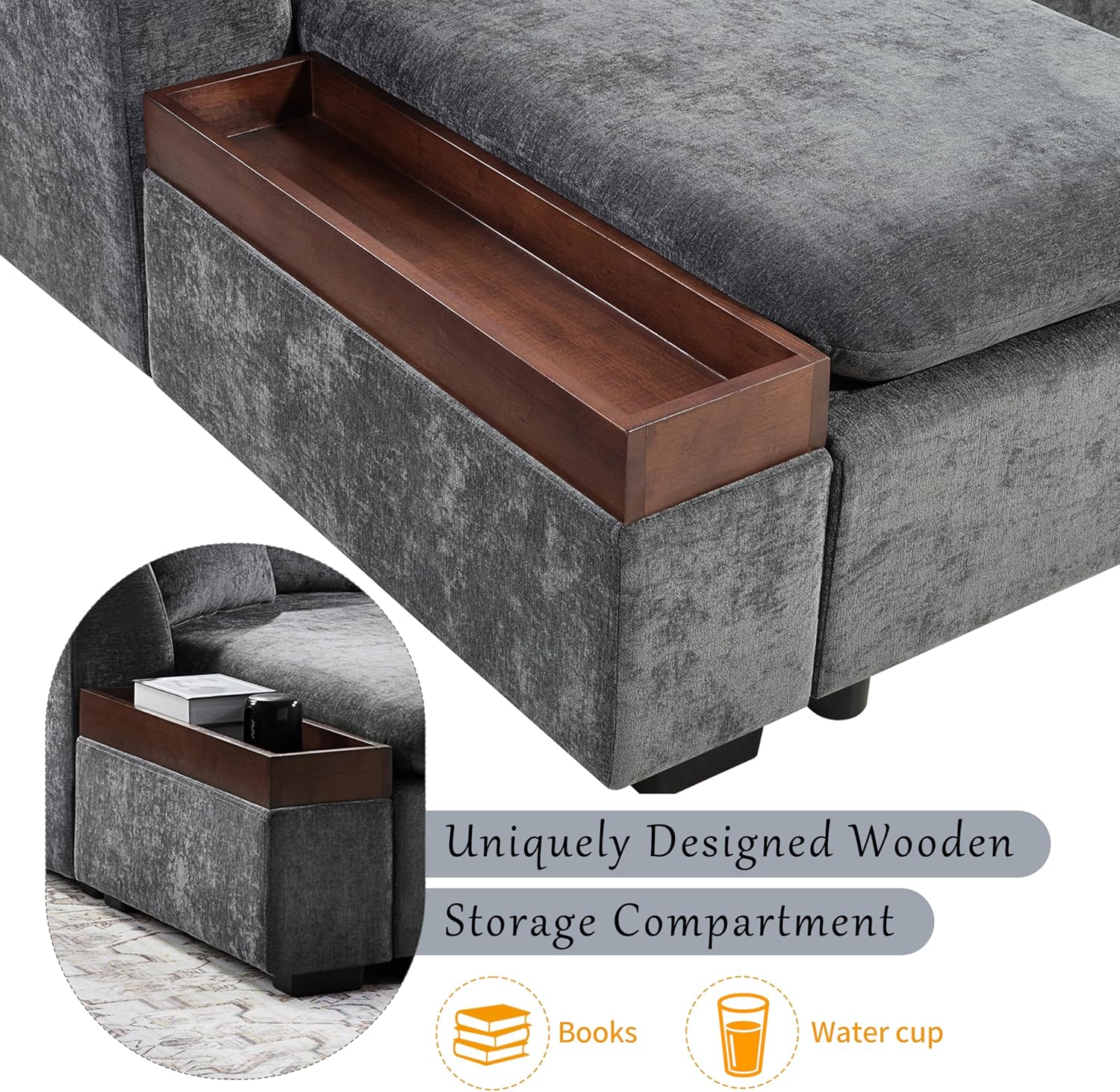- [Built-in Compartment for Convenient Storage] This sectional sofa features a thoughtfully integrated wooden storage compartment on the chaise side, providing a stylish solution to keep your living area organized. Easily store essentials like books and remote controls without compromising on aesthetics.