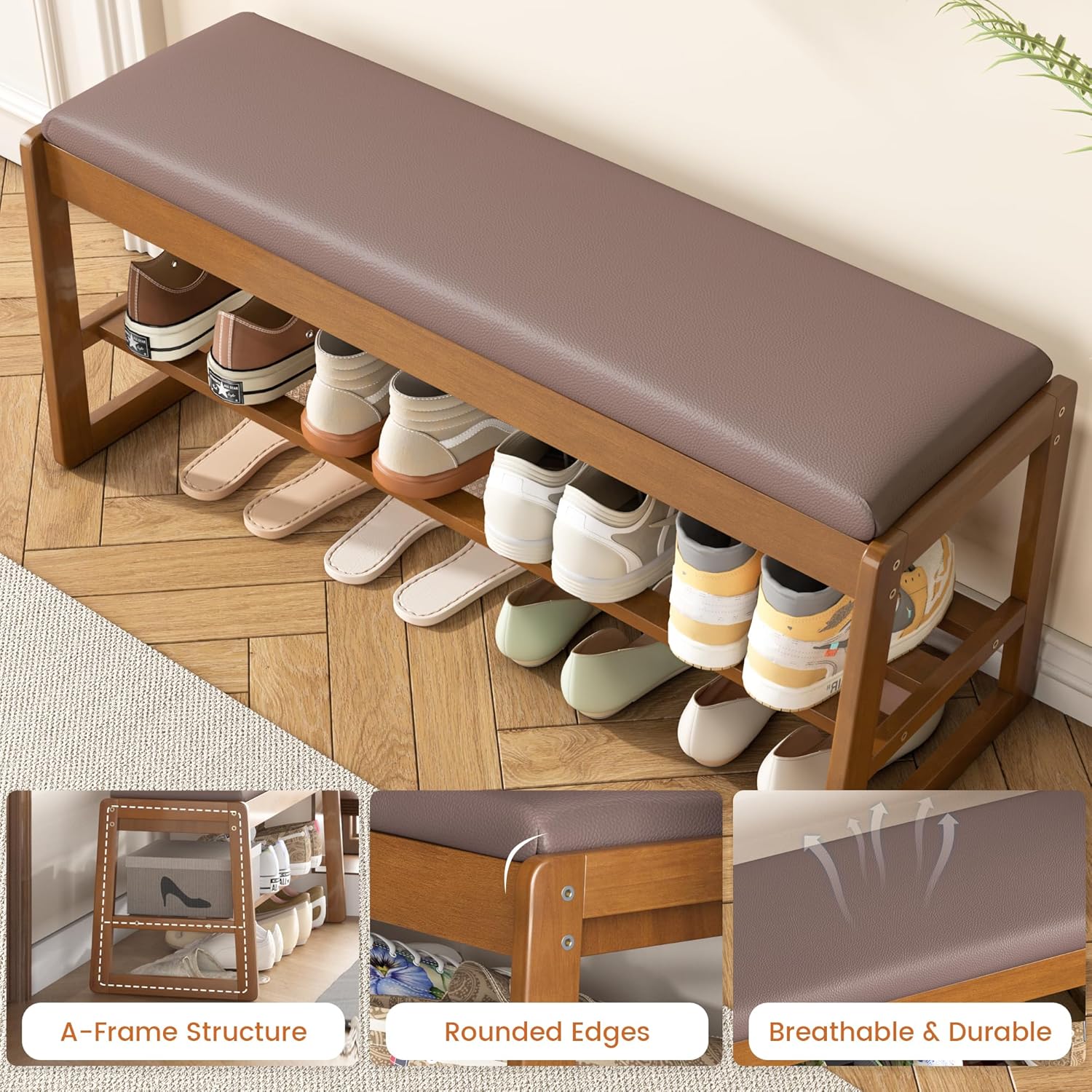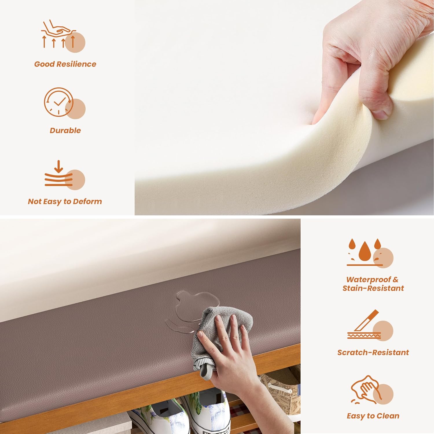 - 【Versatile & Space-Saving】More than just a shoe bench—it’s a clutter-busting hero! Hide essentials in the secret compartment or use it as a hallway seat, bedroom ottoman, or living room organizer. The warm walnut finish adds sophistication to any room.