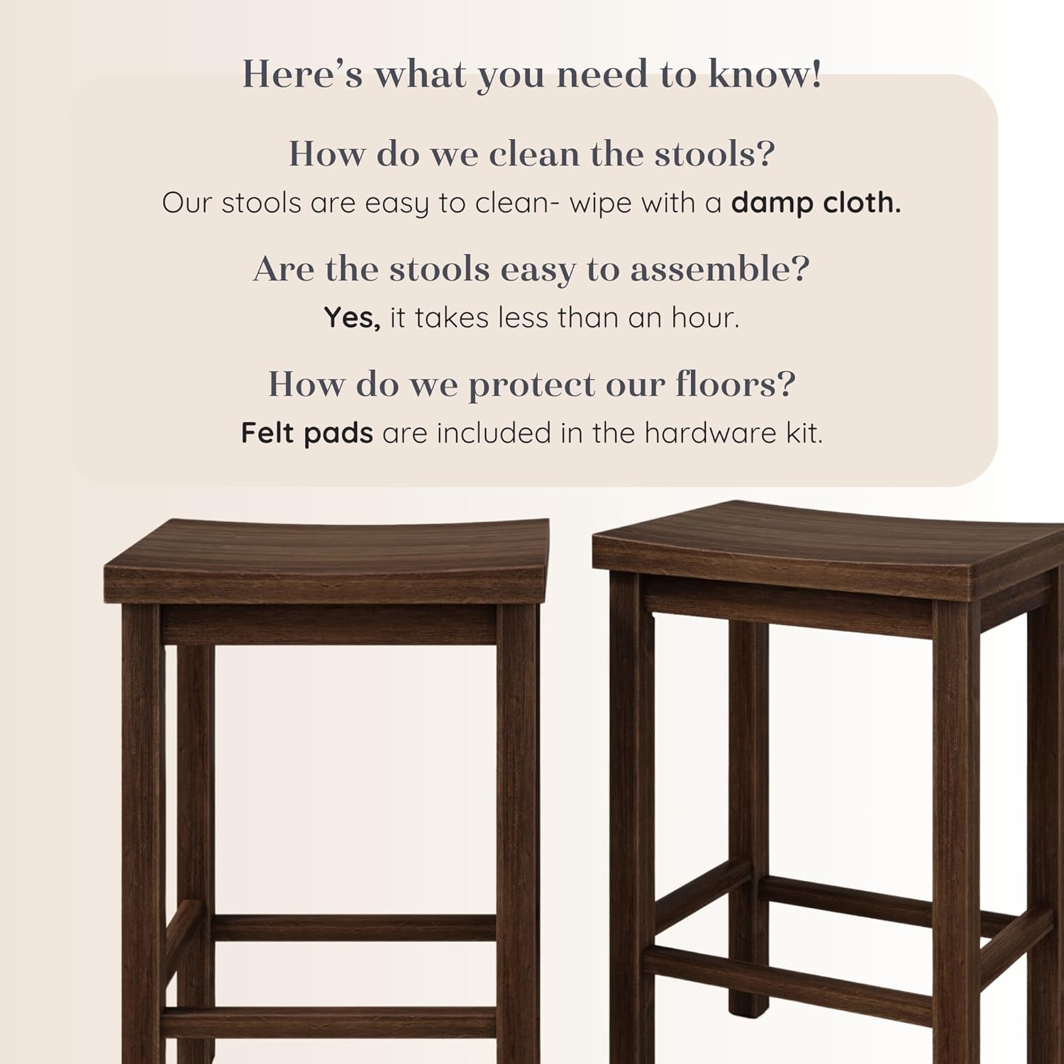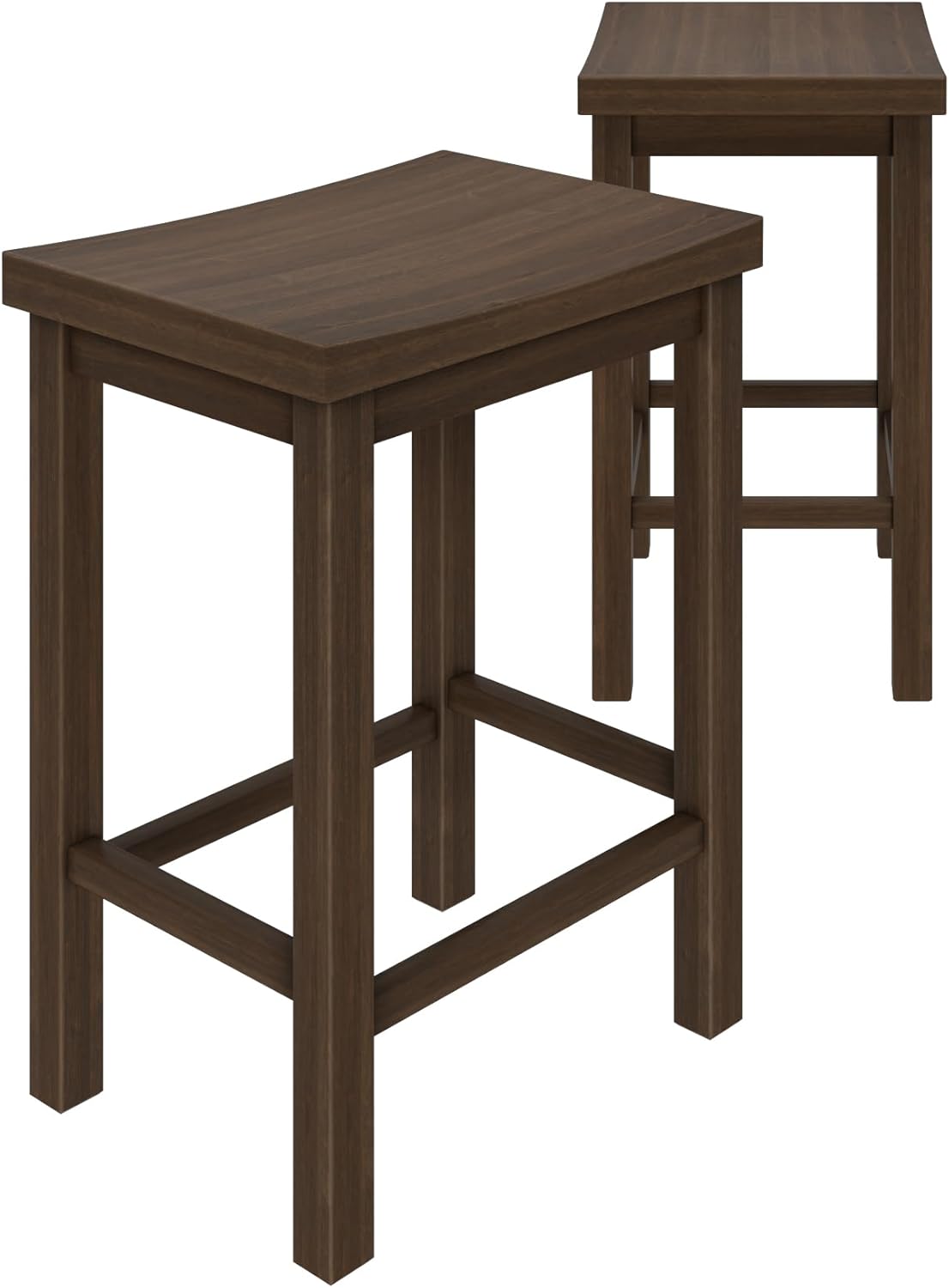 Grain & Grove Smith Collection Set of 2 Solid Wood Counter Height Bar Stools, 24-Inch Saddle Seat Backless Stools, Ideal for Kitchen Island, Dining, or Home Bar Seating, Walnut