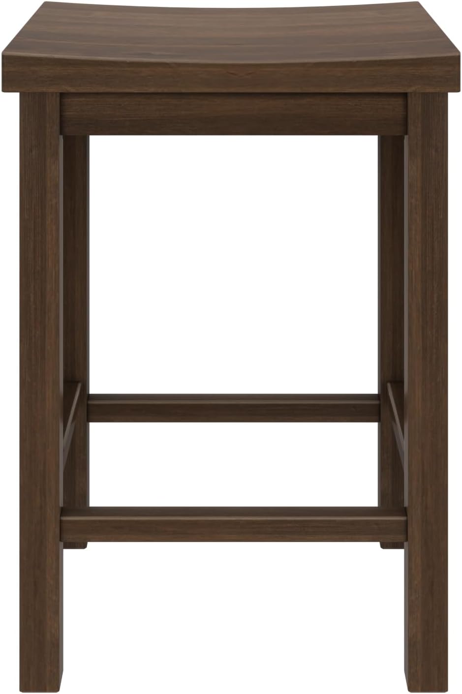 Grain & Grove Smith Collection Solid Wood Counter Height Bar Stool, 24-Inch Saddle Seat Backless Stool, Ideal for Kitchen Island, Dining, or Home Bar Seating, Walnut