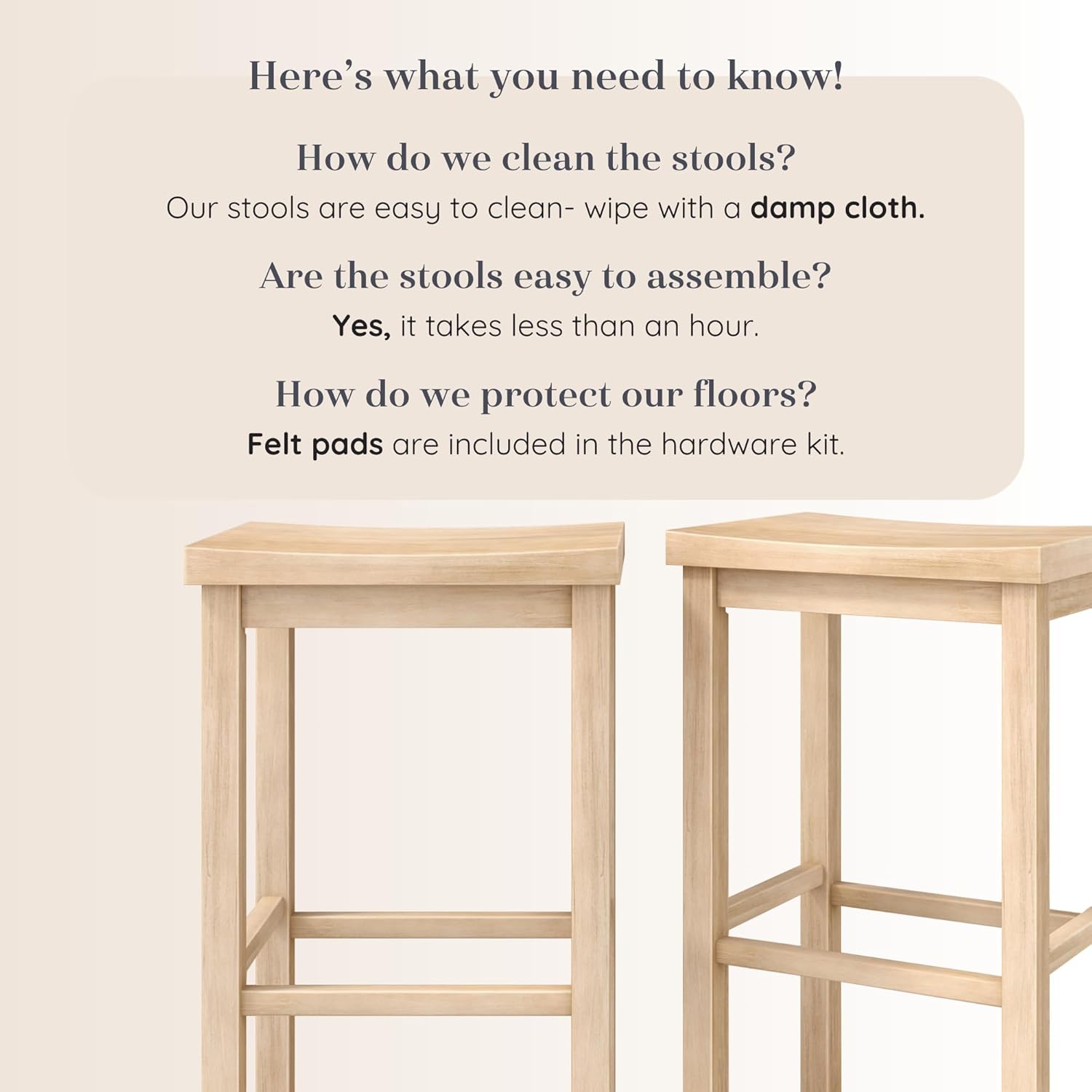 Grain & Grove Smith Collection Set of 2 Solid Wood Bar Stools, 30 inch Saddle-Seat Bar Chairs, Backless, Heavy-Duty Construction, Footrest Support, for Kitchen Islands, Home Bars, and Counters, Blonde