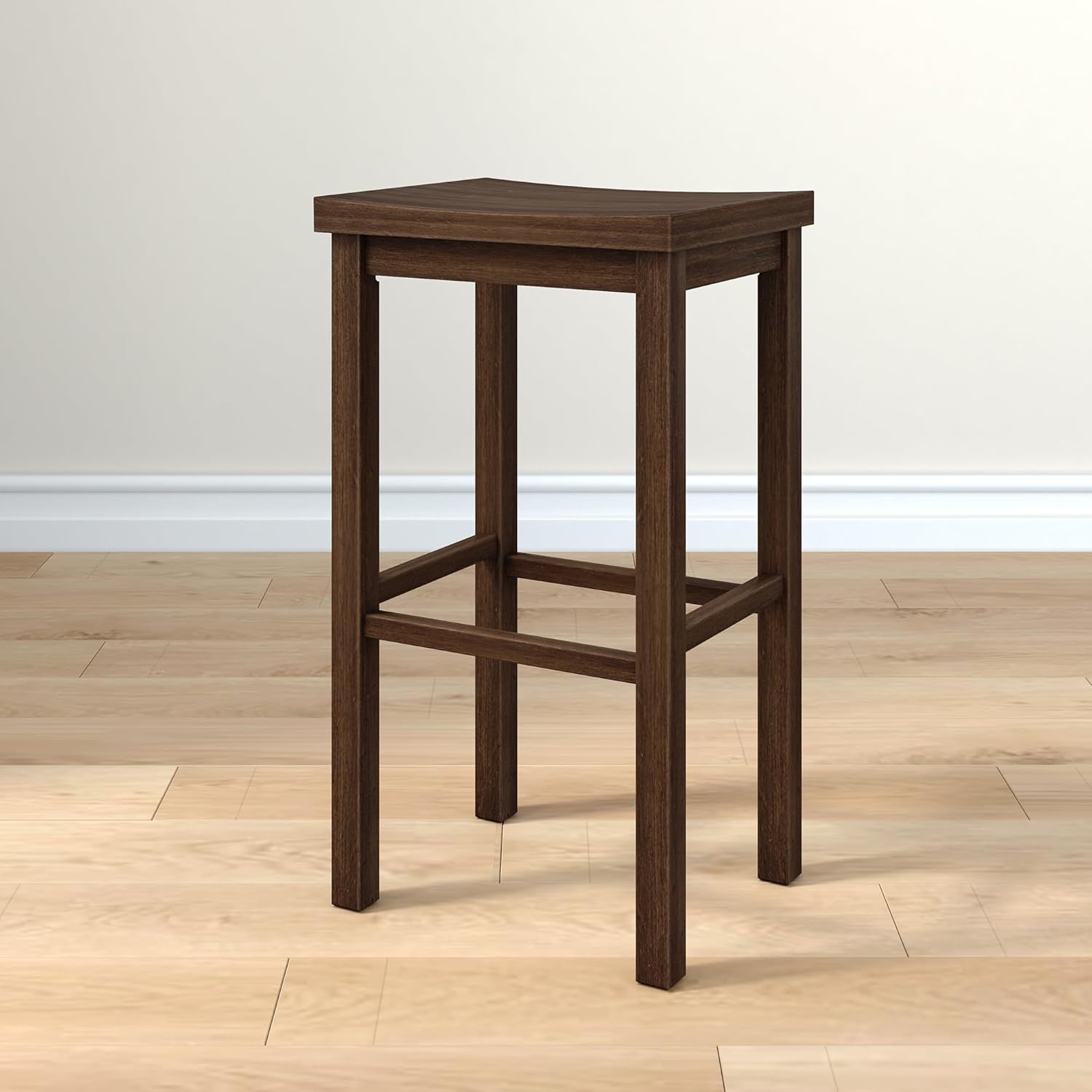 Grain & Grove Smith Collection Solid Wood Bar Stool, 30 inch Saddle-Seat Bar Chair, Backless, Heavy-Duty Construction, Footrest Support, Ideal for Kitchen Islands, Home Bars, and Counters, Walnut