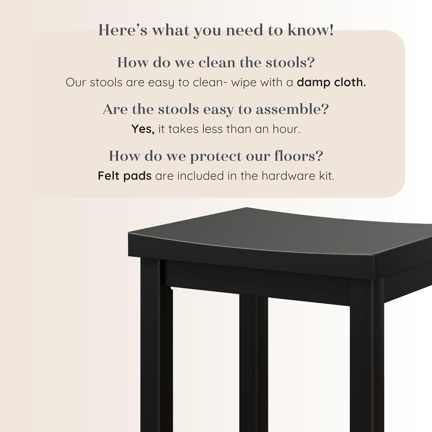 Grain & Grove Smith Collection Solid Wood Counter Height Bar Stool, 24-Inch Saddle Seat Backless Stool, Ideal for Kitchen Island, Dining, or Home Bar Seating, Black