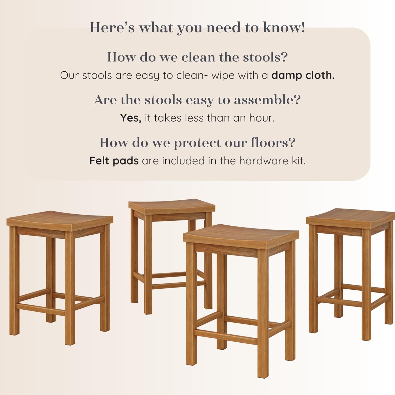 - Hassle-Free Assembly: Designed with convenience in mind, this counter bar stool comes with clear instructions and all the tools and hardware you need for quick, stress-free setup. Plus, it ships in one compact box, making delivery and handling a breeze.