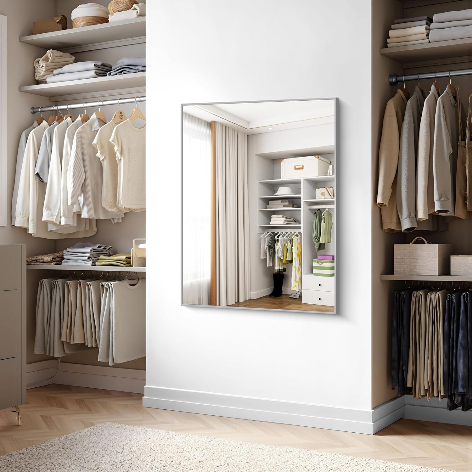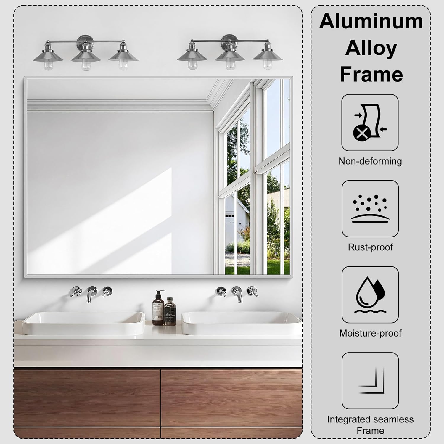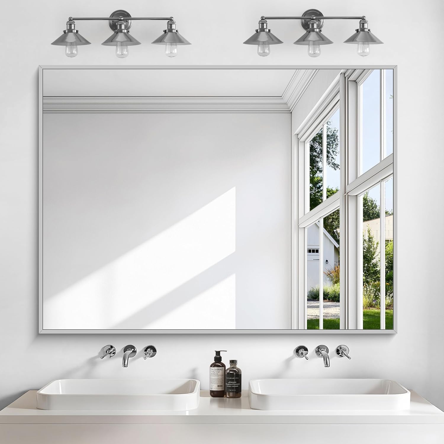 - Modern Design:KOCUUY 36"x48" silver vanity mirror is with innovative design which gives the wall mirror a more fashion feel. With a classic square corner, the wall mounted mirror allows for creativity and functionality in bathroom, bedroom, entryway and anywhere else. Let your living space be an expression of your personal style, not limited to modern or contemporary, farmhouse or industrial.