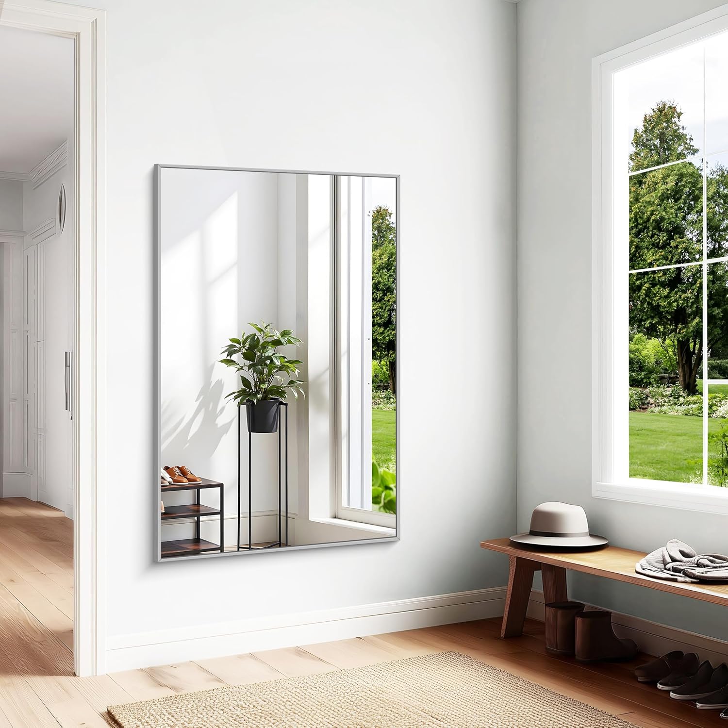 - Exceptional Quality:KOCUUY silver wall mirror is made of HD 3mm premium glass, shatterproof, bright and anti-distortion, which provides perfect reflection. Durable Aluminum alloy frame would strengthen the floating glass for safety, waterproof and anti-corrosion in wet bathroom environments.