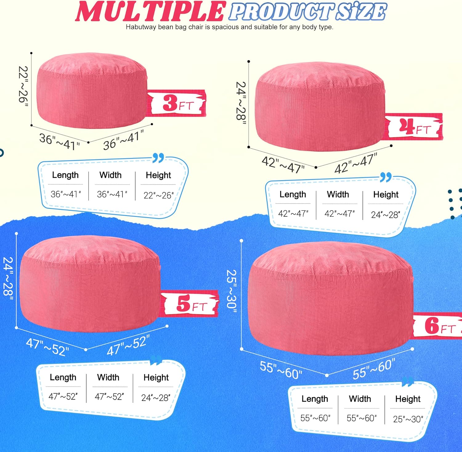 HABUTWAY 5FT Bean Bag Chair,Giant Bean Bag Chairs for Adults,Big Bean Bags with Memory Foam Filled, Large Beanbag Chairs with Soft Corduroy Cover-Pink