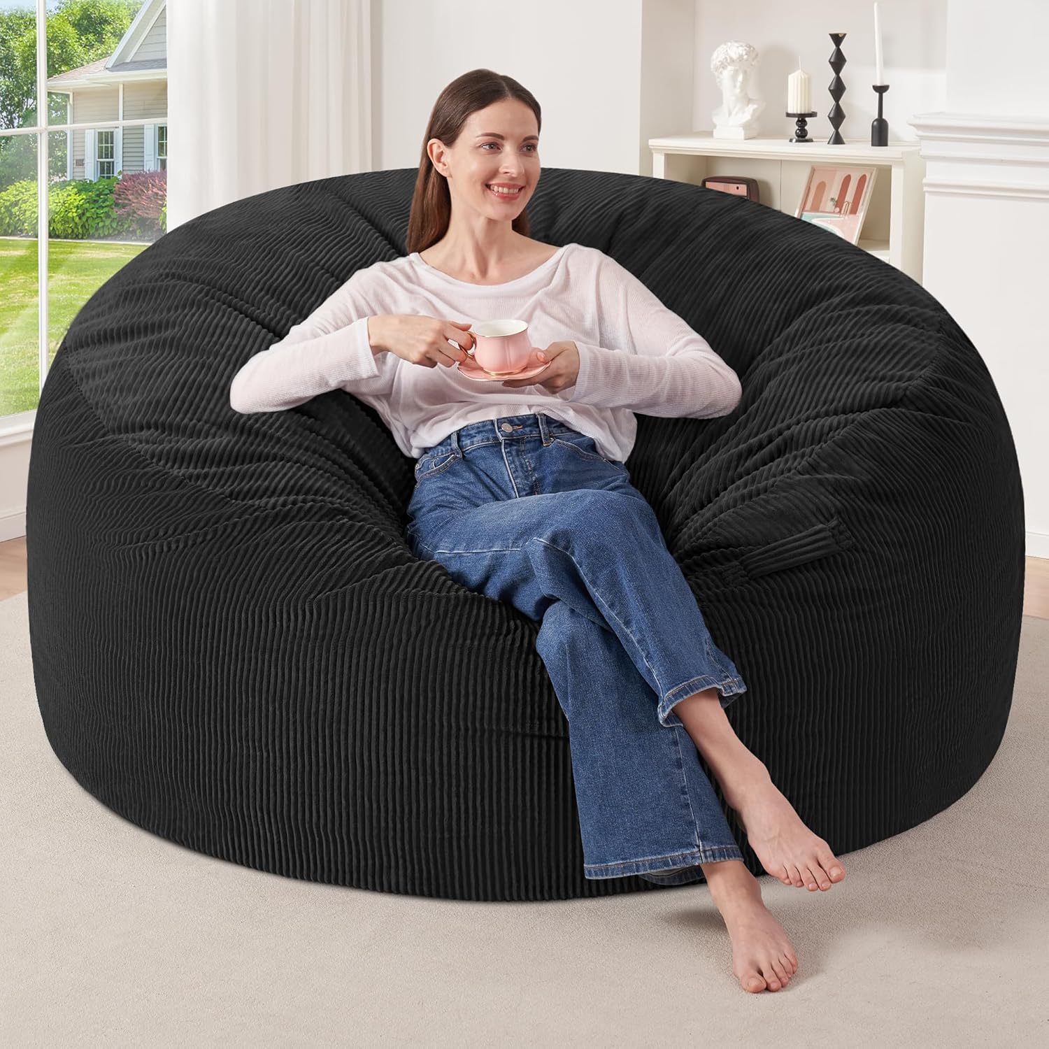 HABUTWAY 5FT Bean Bag Chair,Giant Bean Bag Chairs for Adults,Big Bean Bags with Memory Foam Filled, Large Beanbag Chairs with Soft Corduroy Cover-Black