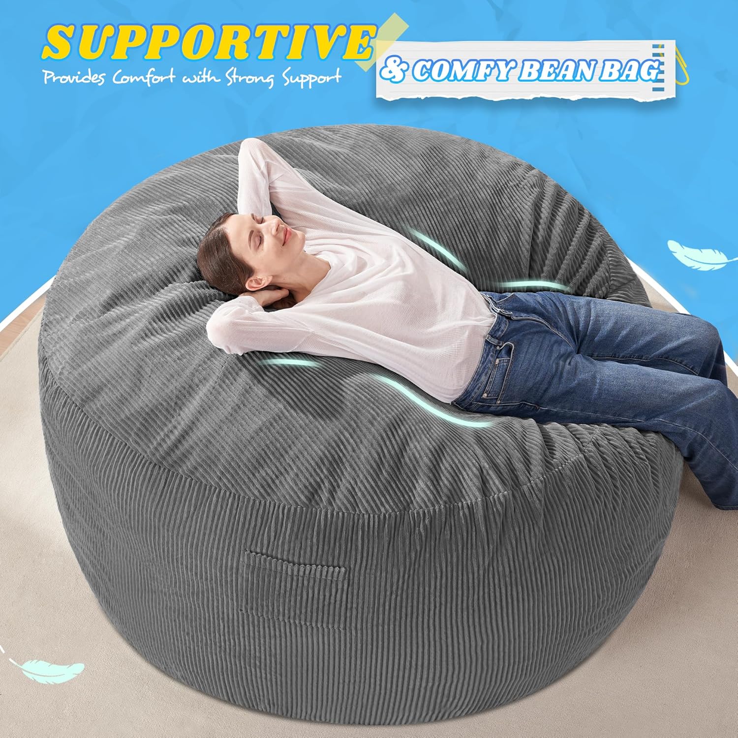 HABUTWAY 5FT Bean Bag Chair,Giant Bean Bag Chairs for Adults,Big Bean Bags with Memory Foam Filled, Large Beanbag Chairs with Soft Corduroy Cover-Grey