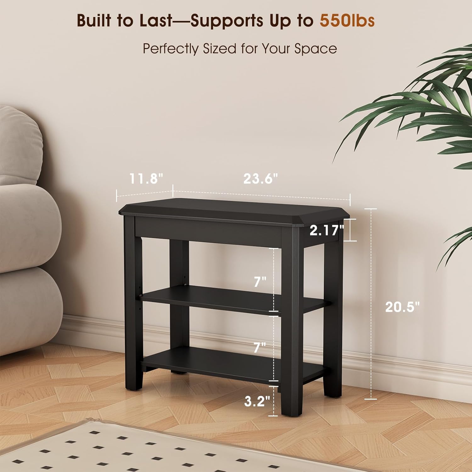 - Compact & Adjustable 3-Tier Shoe Storage Solution: Maximize your space with the 3-tier design of this shoe bench, which holds 6-10 pairs of shoes with adjustable shelves for customized height configurations. Whether placed in a narrow hallway, closet, or tight corner, this compact storage bench helps keep your entryway neat and tidy. The dimensions (23.6"L x 11.8"W x 20.5"H) ensure the perfect height and width for comfortable seating while changing shoes, offering ample room without taking up unnecessary space