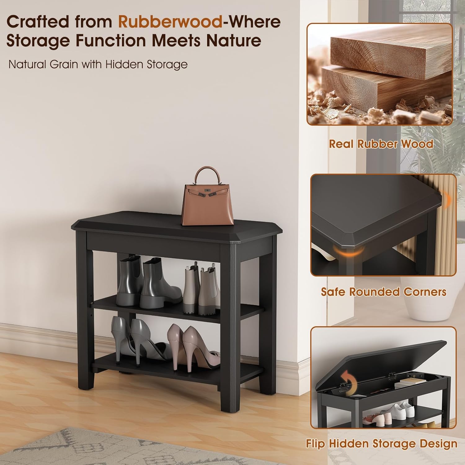- Sturdy & Durable Real Rubberwood Material: Crafted from 100% 3A-grade rubberwood, this shoe rack bench offers exceptional durability and strength. The textured rubberwood cushion adds a touch of natural beauty and warmth. The structure provides outstanding stability, supporting up to 550lbs with ease. Whether you're changing shoes or relaxing, this sturdy bench provides reliable support for years in high-traffic family areas