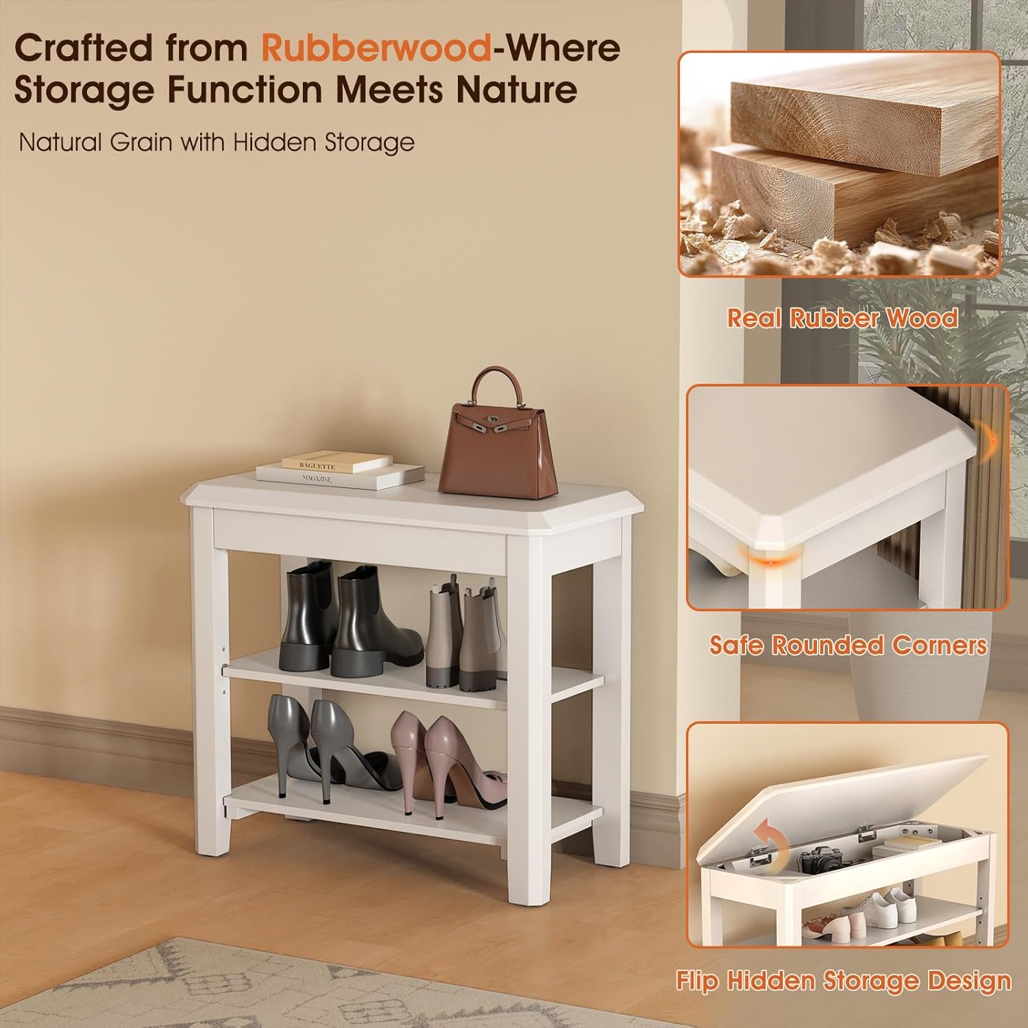 - Sturdy & Durable Real Rubberwood Material: Crafted from 100% 3A-grade rubberwood, this shoe rack bench offers exceptional durability and strength. The textured rubberwood cushion adds a touch of natural beauty and warmth. The structure provides outstanding stability, supporting up to 550lbs with ease. Whether you're changing shoes or relaxing, this sturdy bench provides reliable support for years in high-traffic family areas