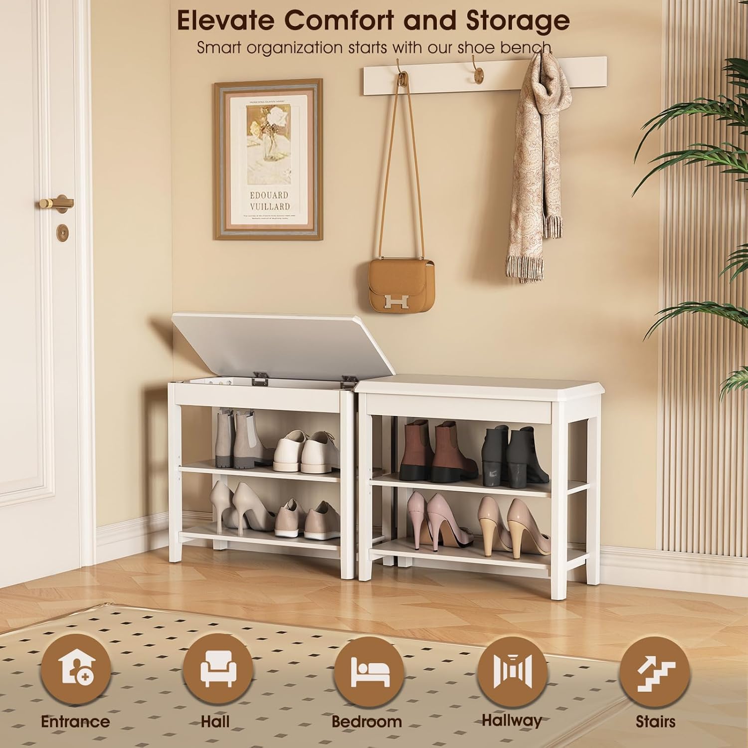 - Space-Saving Hidden Storage Design: Say goodbye to a cluttered entryway! The IUNVR shoe rack features a spacious flip-up storage compartment, perfect for storing socks, keys, and small items. It keeps them out of sight while providing easy access when needed. The soft-close hinge ensures smooth, noise-free operation. With its sleek and minimalist design, this shoe storage bench is the ideal solution for organizing your entryway without sacrificing style or space