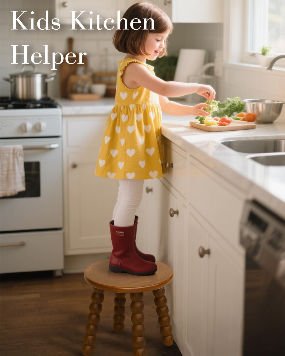 - Smooth Finish & Rounded Design: This wood step stool features a polished, scratch-free surface with rounded edges for safety. Perfect as a stool for kids, it includes non-slip pads to stay secure as a bathroom stool or kitchen helper. The compact small wooden stool design is both child-friendly and versatile.