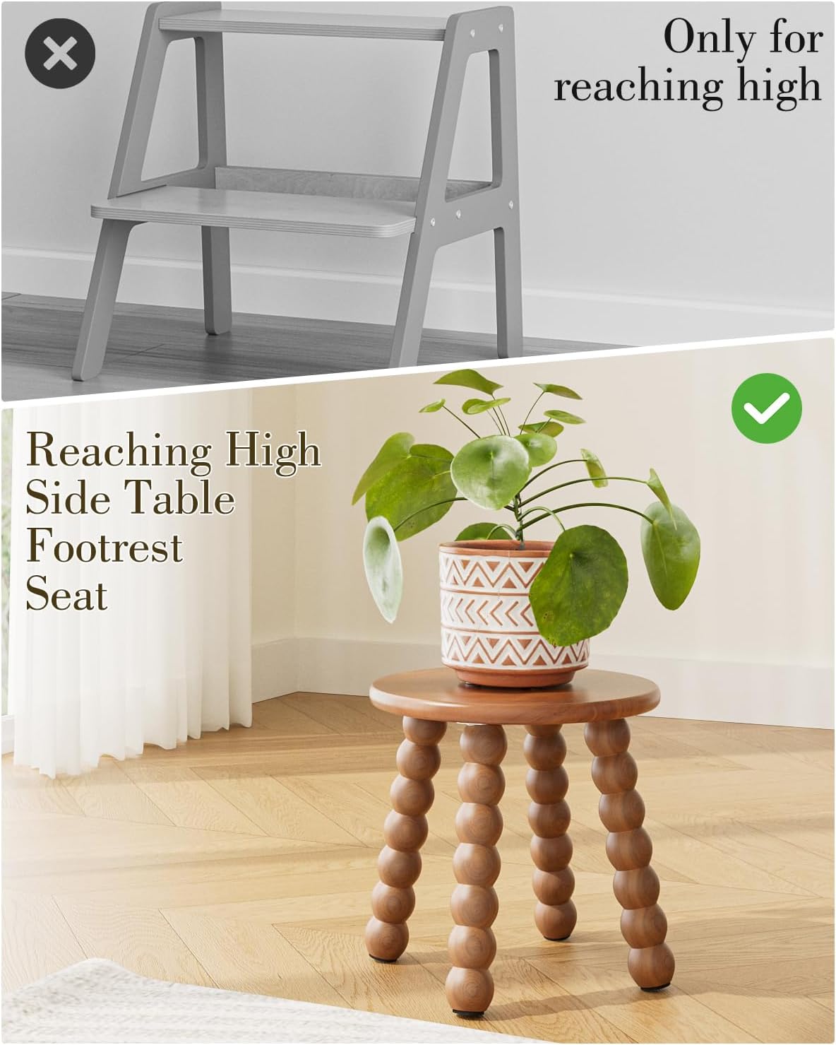 - Solid Wooden Step Stool: Made from 100% natural solid rubber wood, this small stool features thick legs and reinforced metal fittings for maximum stability. Supports up to 300 lbs without cracking or breaking—ideal for adults, toddler, kids, and even as a plant stand or sensory table stool.
