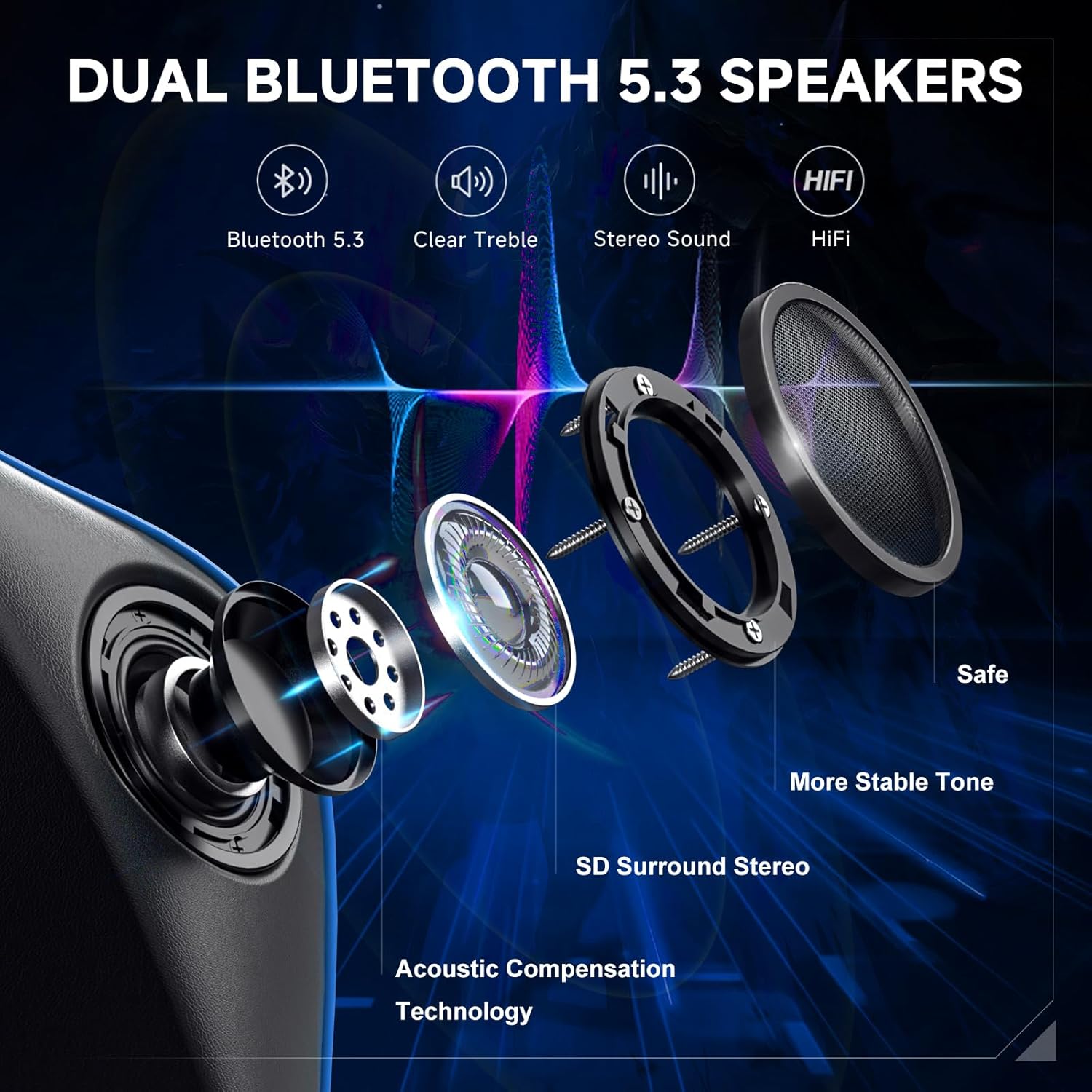 - 【Upgraded Bluetooth 5.3 Speakers】Gaming chair features dual built-in Bluetooth 5.3 speakers on both sides of the backrest.Easily connect your computer,smartphone,tablet or any Bluetooth-enabled device without the hassle of cables.Enjoy faster transmission,more stable connections and enhanced sound quality.Whether you're gaming, watching movies or listening to music,you'll experience a deeper level of immersion that traditional chairs can't offer.