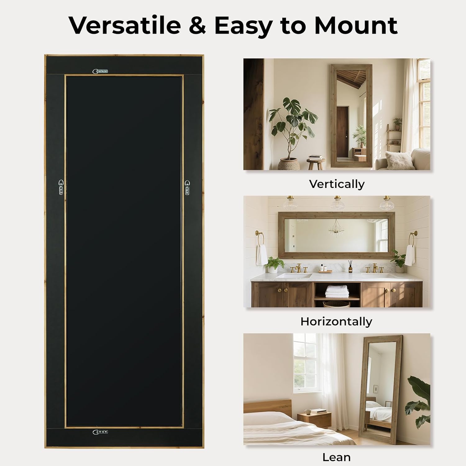 - Effortless Installation: Equipped with 4 pre-installed reinforced D-rings and mounting hardware, this mirror is ready to hang right out of the box. Whether positioned vertically or horizontally, it’s designed for a safe, stable, and hassle-free installation experience.