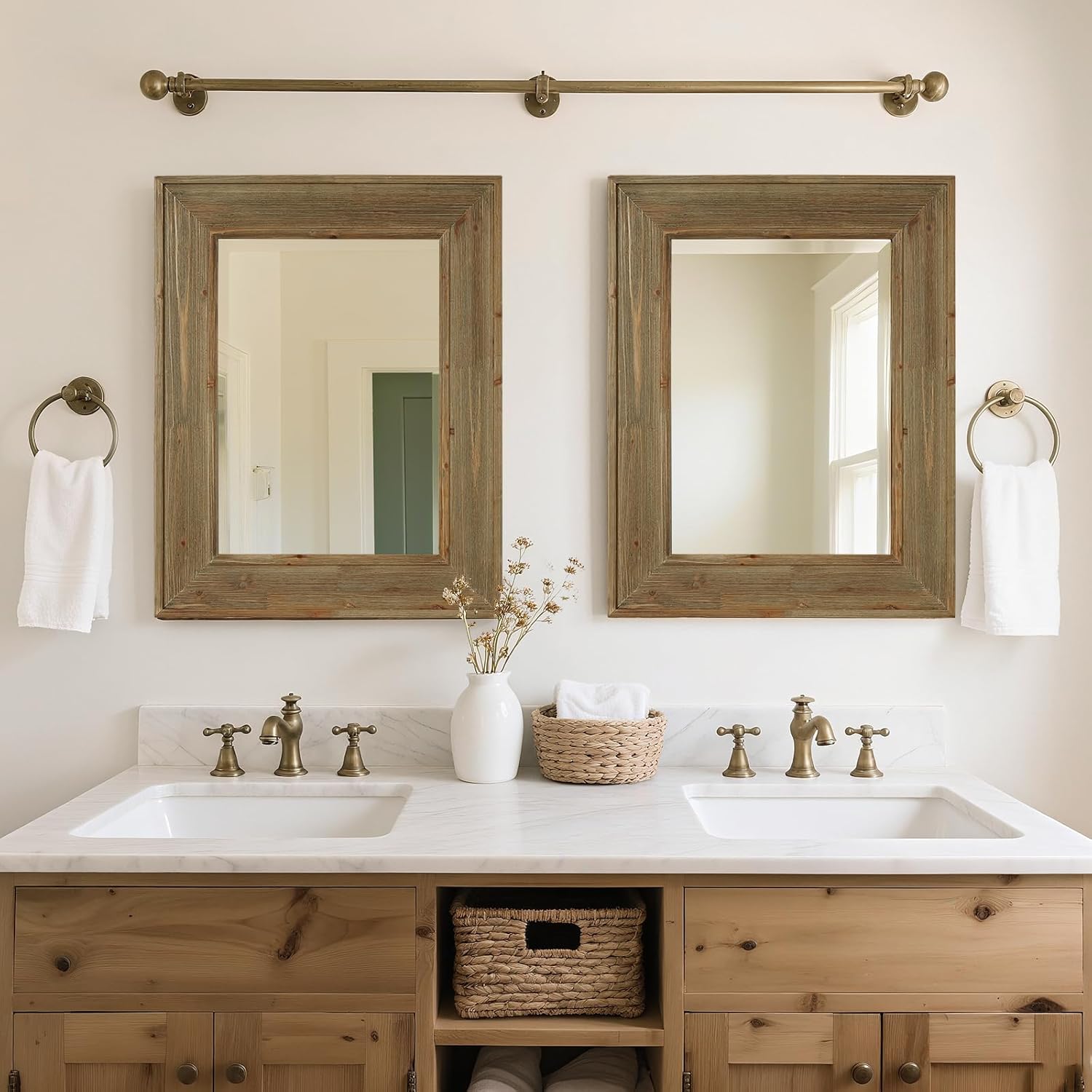 WallBeyond Rustic Wood Framed Mirror, 22" x 28" Farmhouse Decorative Wall Mirror, Vintage Solid Wood Rectangular for Bathroom, Entryway & Living Room, Natural
