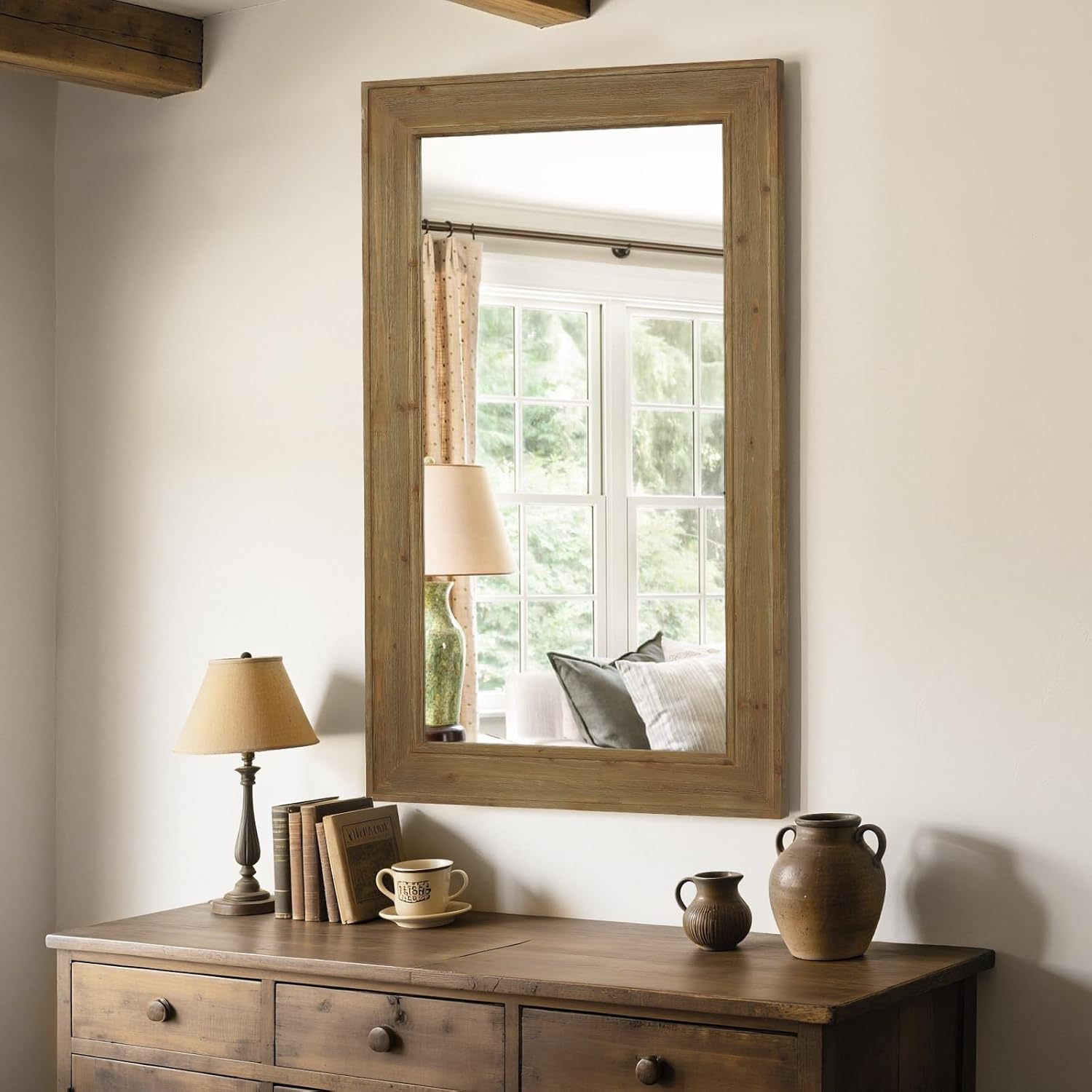 WallBeyond Rustic Wood Framed Mirror, 30" x 48" Farmhouse Decorative Wall Mirror, Vintage Solid Wood Rectangular for Bathroom, Entryway & Living Room, Natural