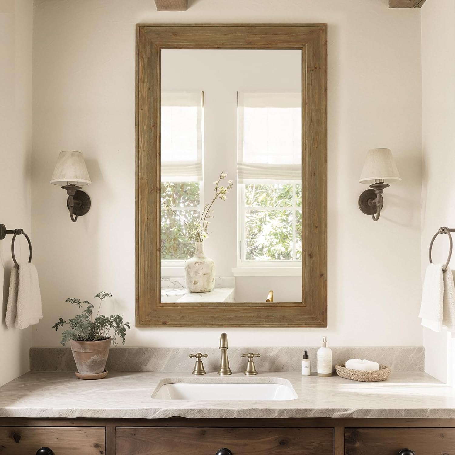 - Versatile Use: Perfect for bathrooms, bedrooms, entryways, and living rooms, this rustic wood framed mirror enhances any wall space. Plus, our responsive customer support team is ready to assist with any inquiries, ensuring a worry-free purchase experience.