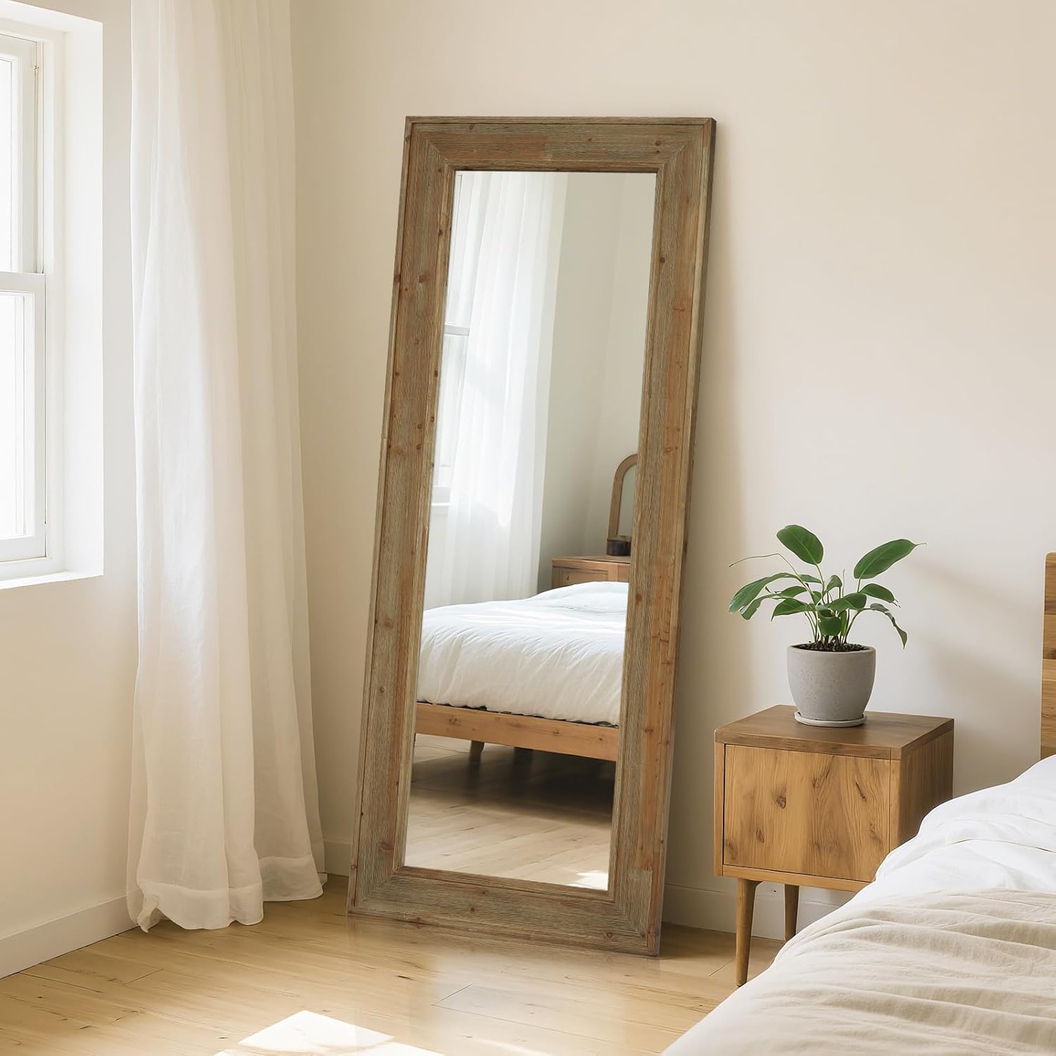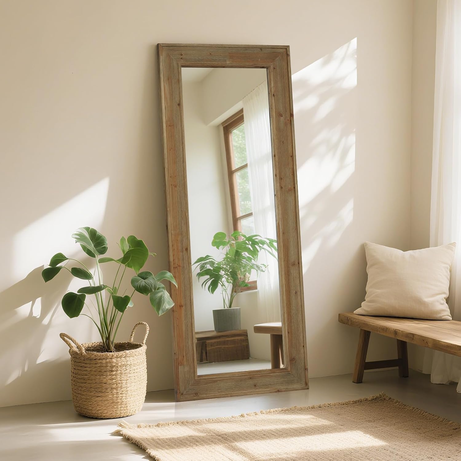 - Farmhouse Rustic Design: Crafted from solid wood with a deep, distressed grain finish, this 24" x 60" full length mirror adds a timeless vintage charm to any space. Its rustic farmhouse style seamlessly blends with both modern and traditional décor, creating a warm and inviting atmosphere for your home.