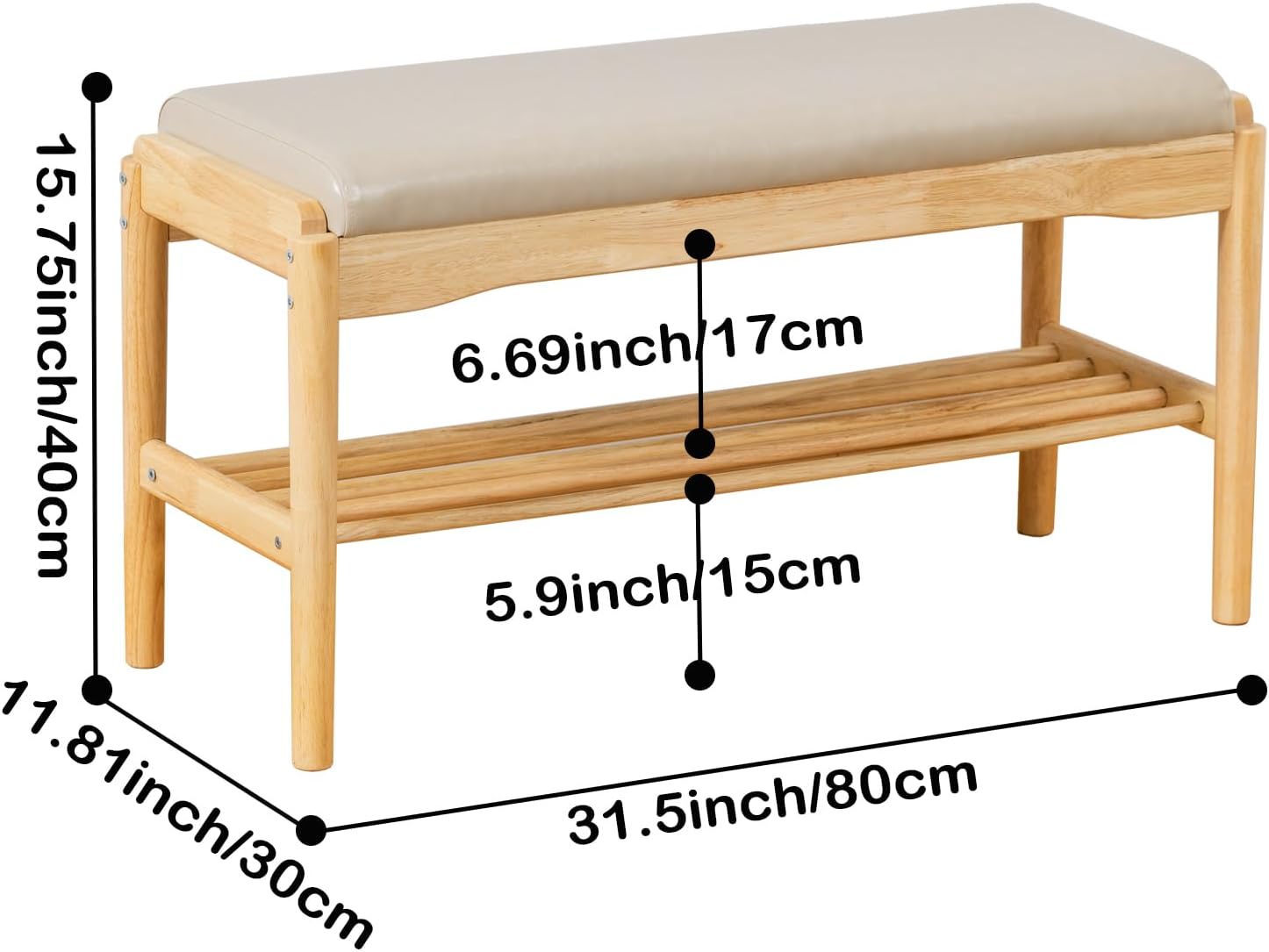 Shoe Bench, Entryway Bench, Wood 2-Tier Shoe Rack with Cushion Padded Seat Shoe Organizer (31.5",Beige+Nature)