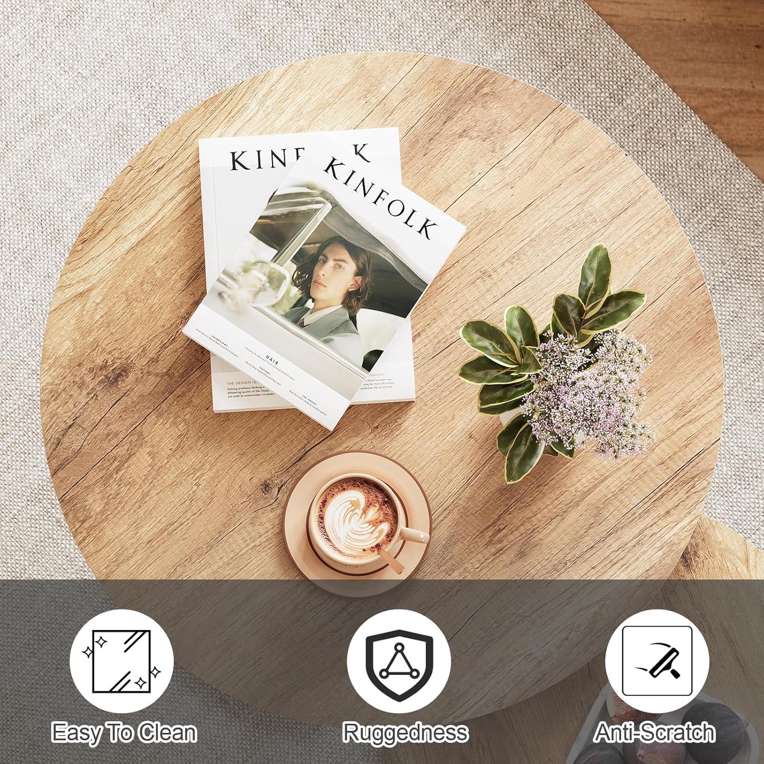 - 【Sturdy and Durable】The wooden coffee table is constructed with a durable metal frame and MDF to ensure that it is sturdy and durable. The way the round nested table's round base is attached to the metal legs not only enhances the stability of the overall structure, but also effectively reduces the risk of tipping.