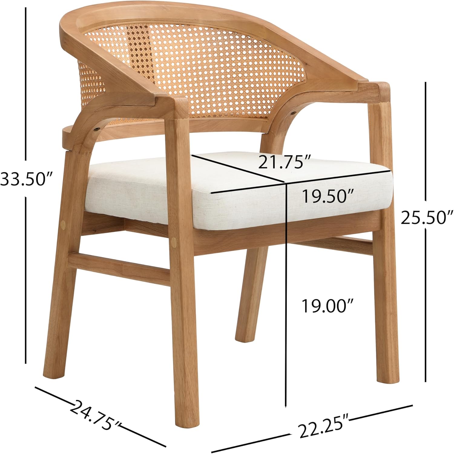Christopher Knight Home Faritel Modern Wooden Dining Chairs Set of 2, Fabric Upholstered Kitchen Side Armchairs, Living Room Comfy Reading Chair with Curved Rattan Back, Natural Oak+Beige