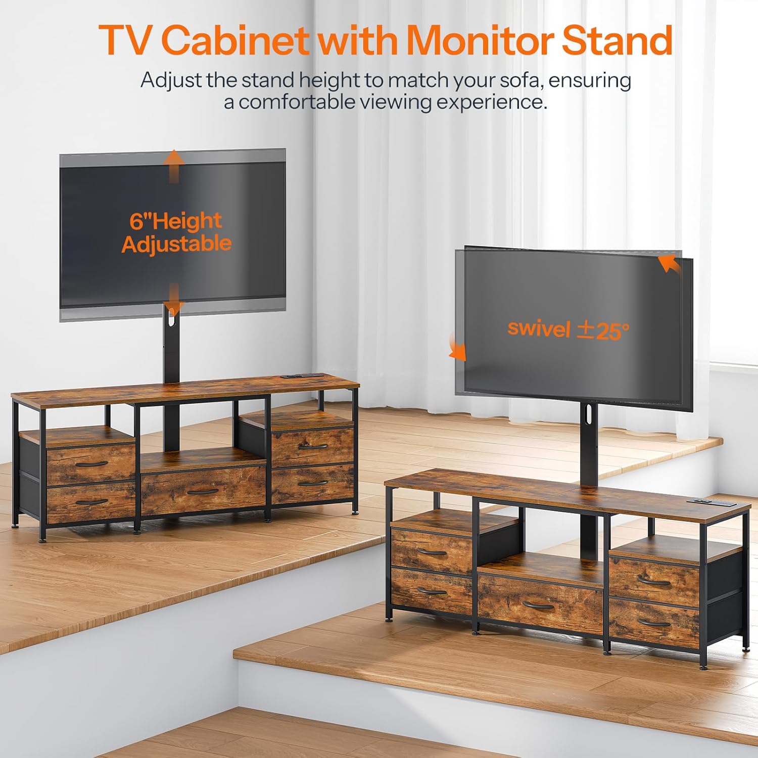 HOOBRO TV Stand with Mount and Power Outlet, for 32/45/55/60/65 inch TVs, Swivel Led Entertainment Center with Drawers, Adjustable Media Console for Living Room, Bedroom, Rustic Brown BF130UDDS01