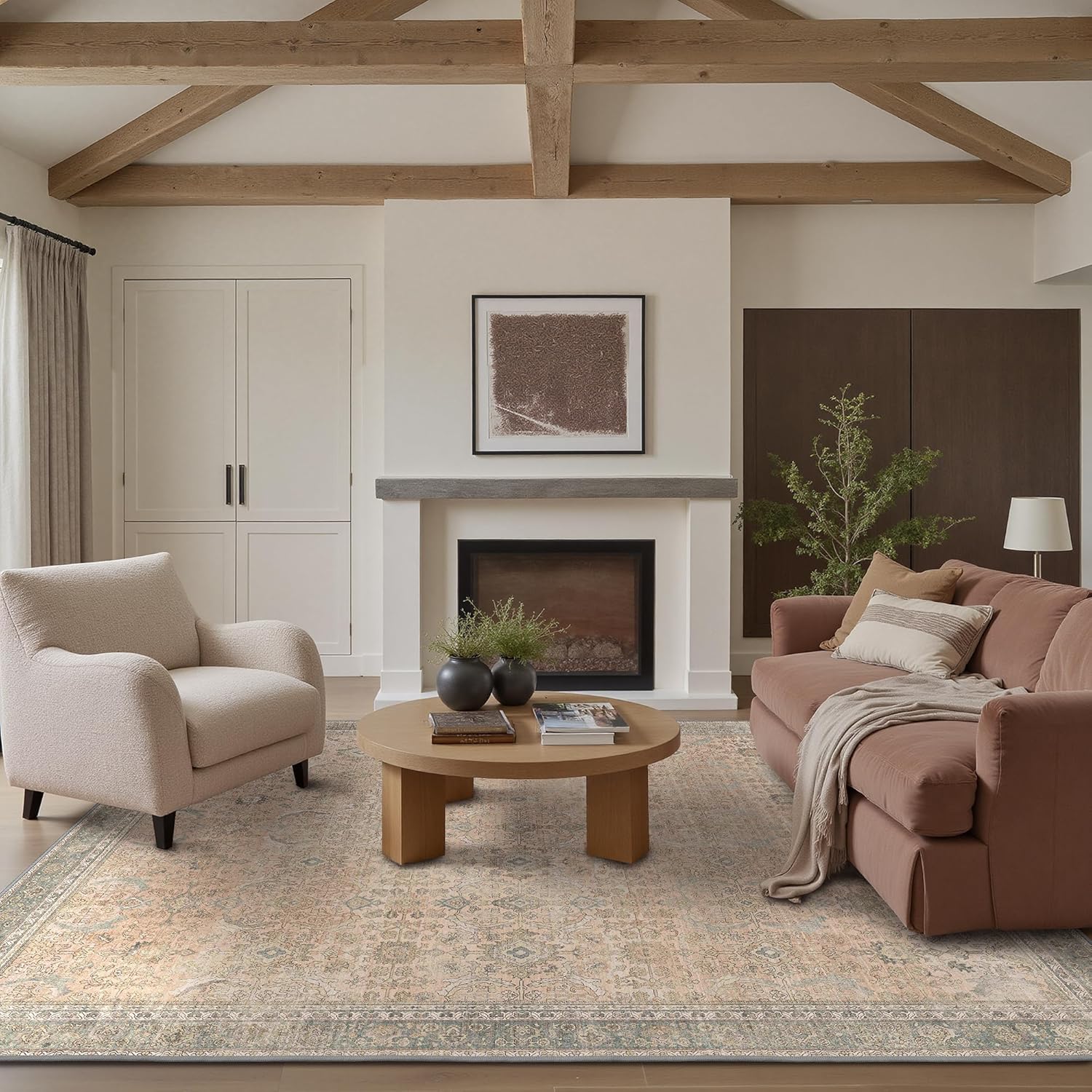 - Timeless Vintage Design:This soft sand rug elegantly combines a timeless floral design with a muted color palette to infuse your living space with a touch of vintage charm. Its unique texture and patterns add a layer of sophistication and comfort to any room, making it a versatile addition to both modern and traditional decors.