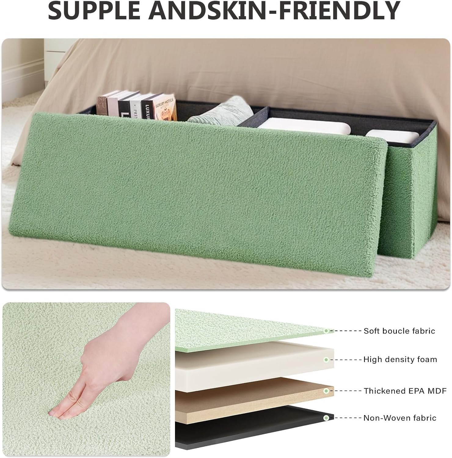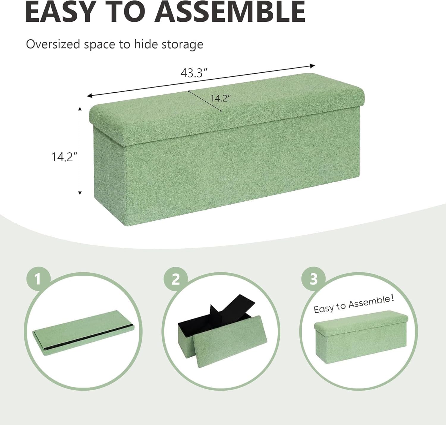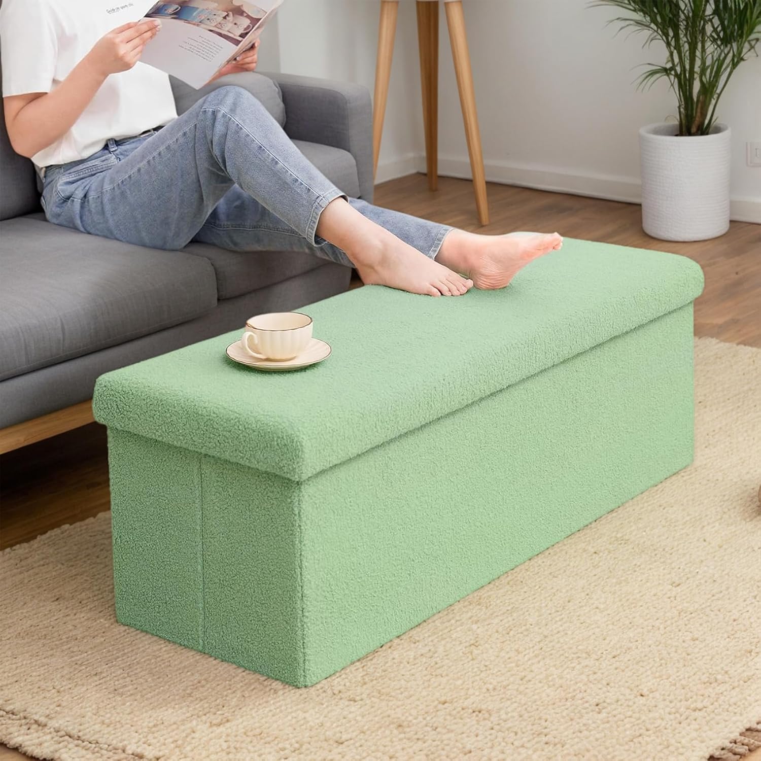 43 Inches Storage Ottoman Bench - Extra Large Foldable Ottoman with Storage, Bench for Living Room, Bedroom, Entryway - Green