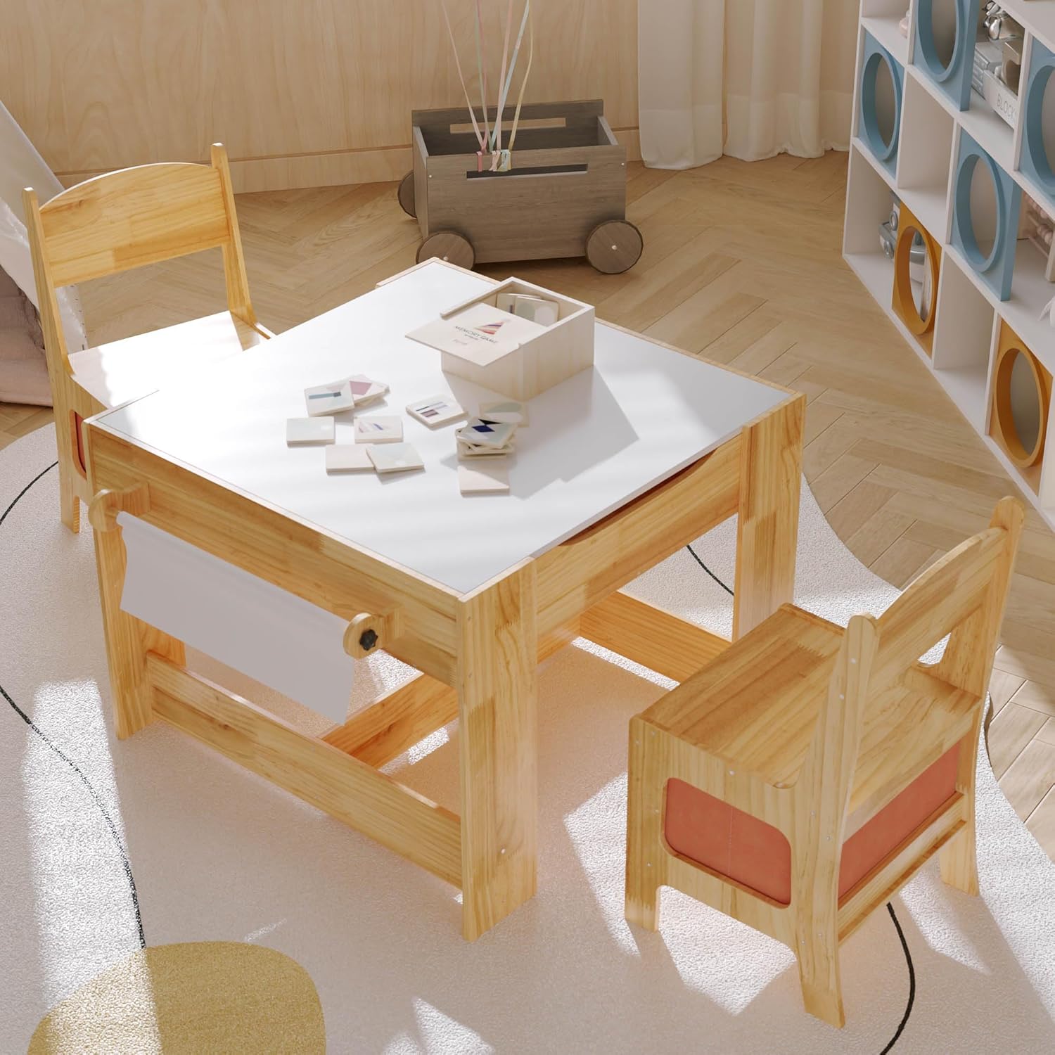 - Extra Storage Space: Designed with large storage space under the desktop, as well as 2 drawers under the chairs, there is enough space for storage, helping you and your kids keep the room tidy. This toddler table chair set can be used in a children's room, kindergarten, playroom, nursery, etc.