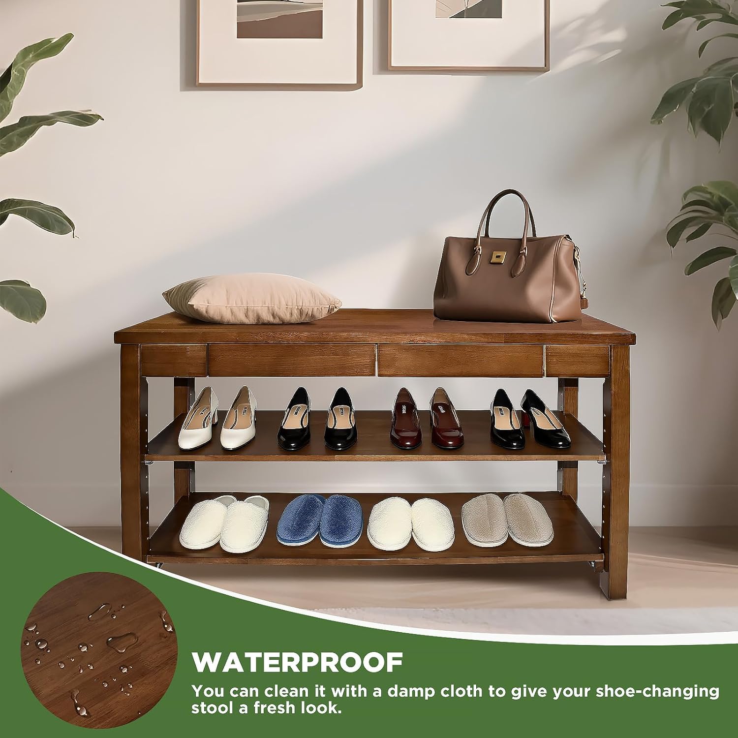 - ✔️Built to Last: Heavy-Duty Construction Crafted from solid rubberwood, this shoe rack with bench supports up to 550 lbs—offering rock-solid stability for years of daily use. Durable enough for families, yet stylish enough for any room.