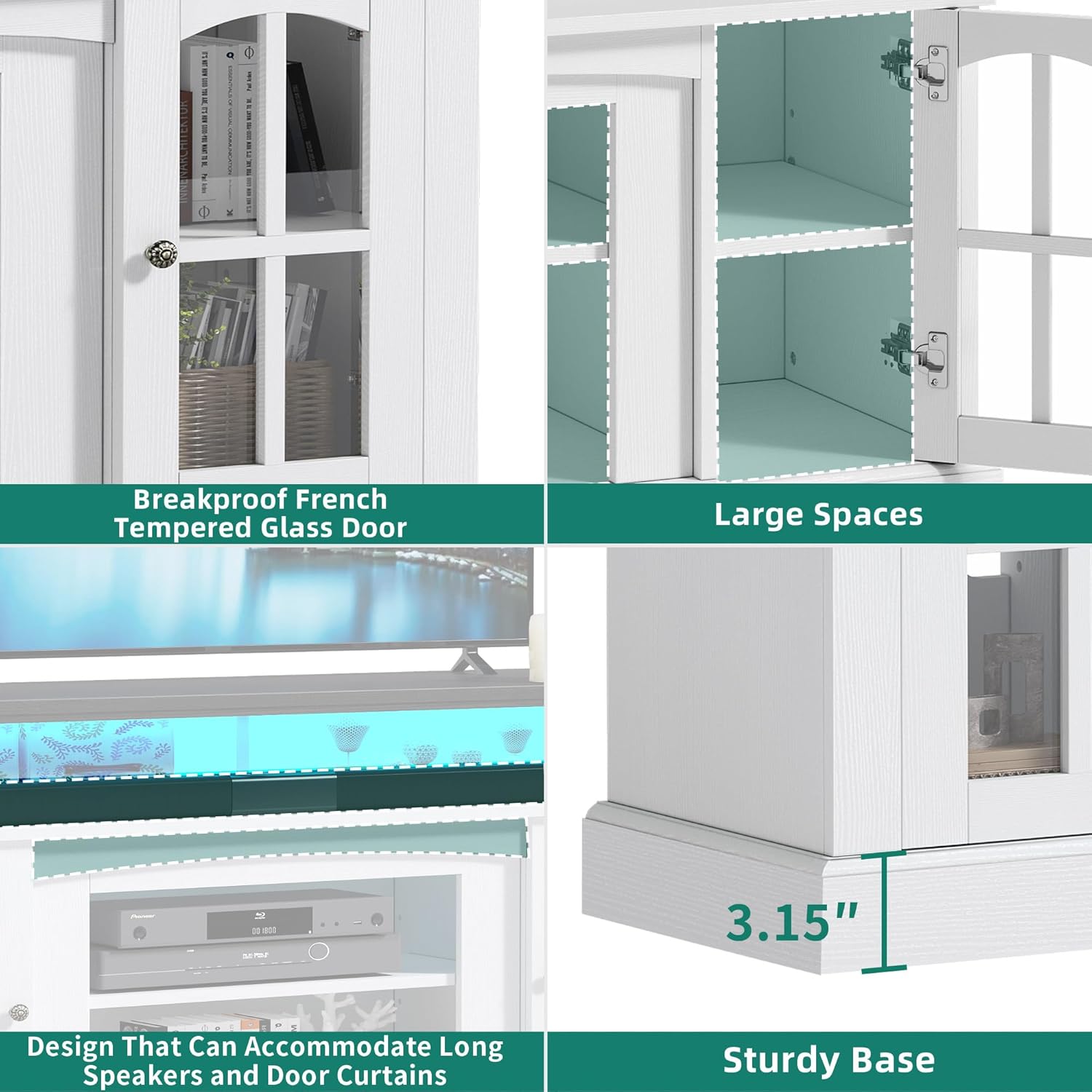 - Tempered Glass Doors: Entertainment center designed with durable tempered glass doors, allowing you to safely store and display your favorite collectibles