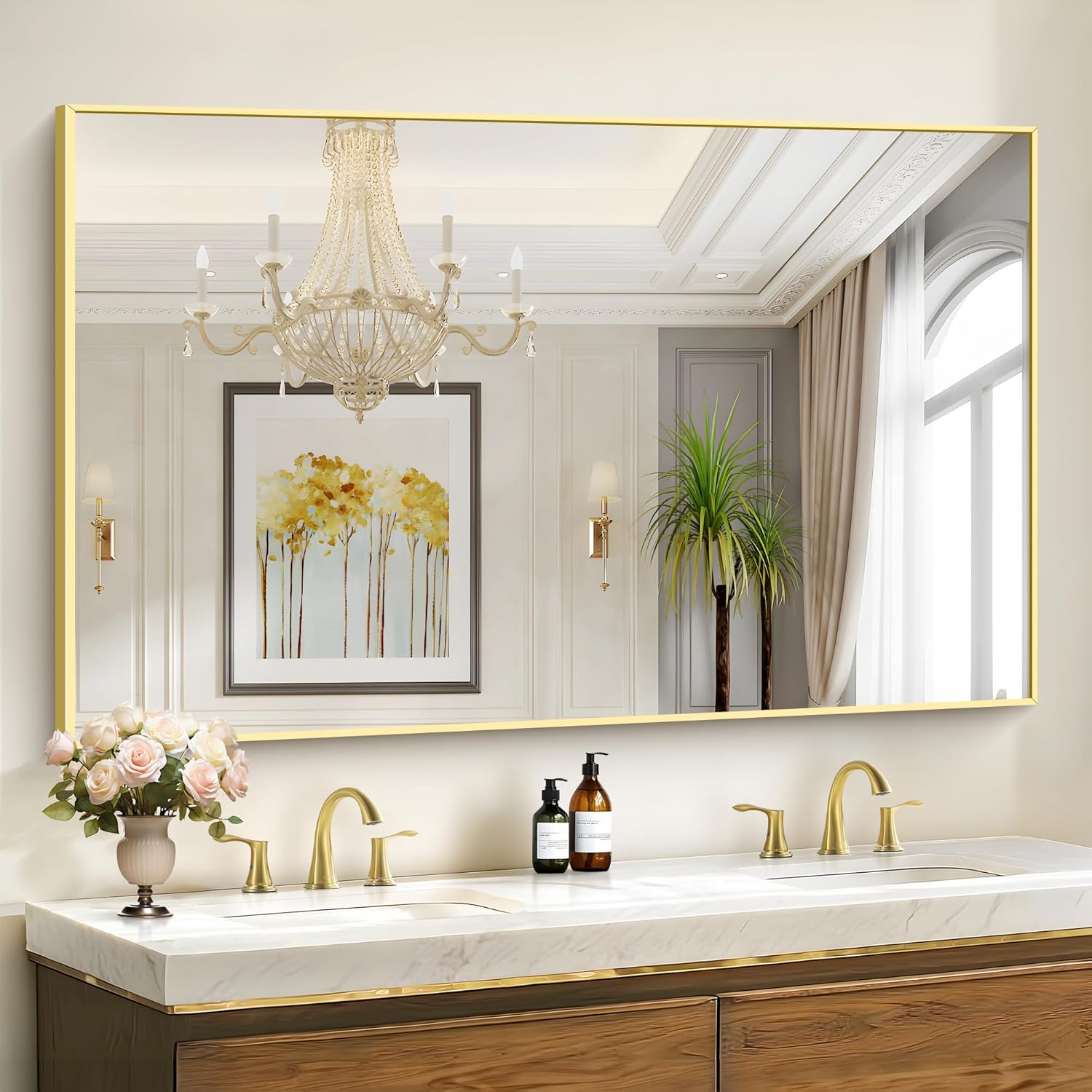 40x60inch Gold Bathroom Mirror, Gold Rectangle Mirror with Frame, Large Rectangular Wall Mirrors for Bathroom, Living Room, Hair Salon, Big Farmhouse Mirror Hang Horizontal/Vertical