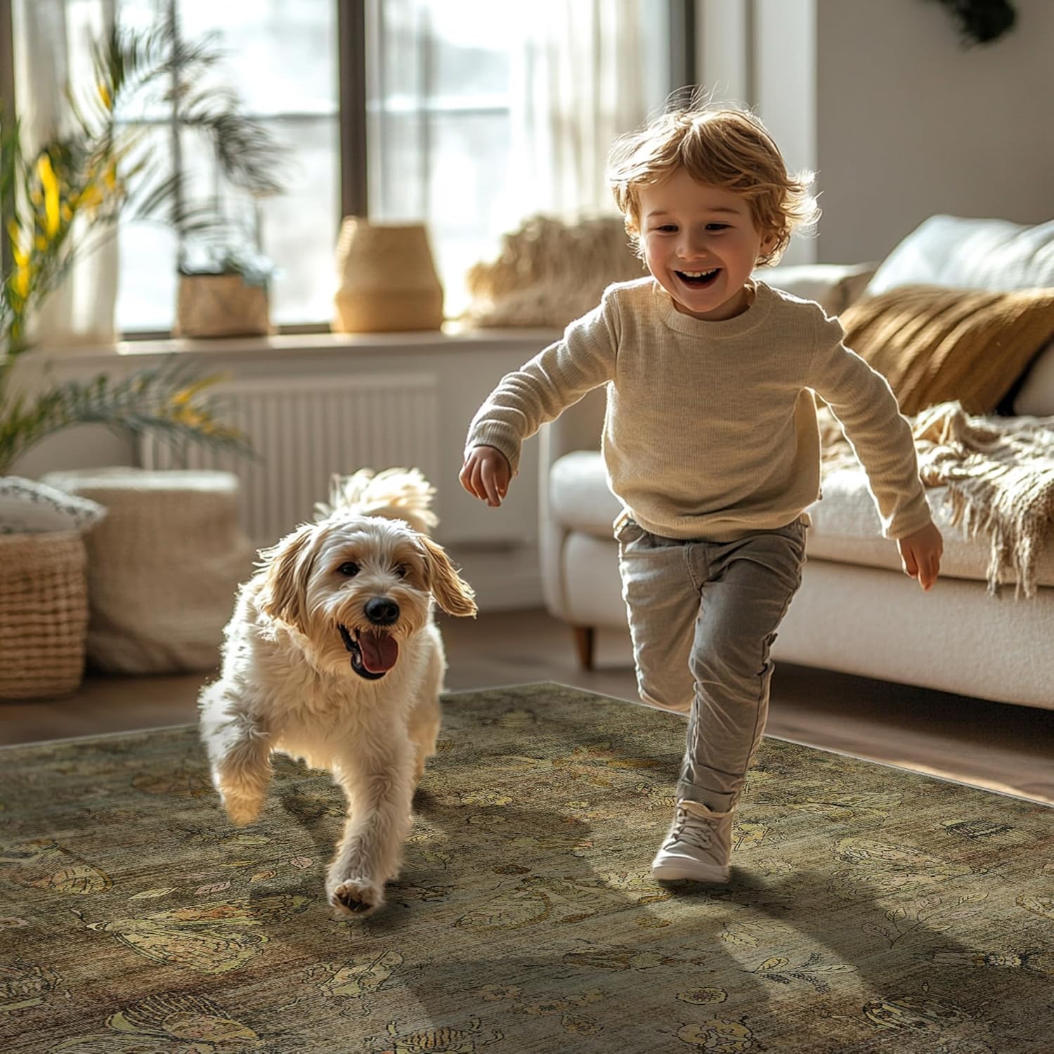 - Non-Slip Backing: Our washable rugs have a high-quality non-slip backing that secures floors from scratches and keeps the rug securely in place, avoiding any shifting or slipping. It serves as a comfortable, reliable and stable cushioning for frequently used areas such as the living room, dining room, kitchen, and hallways. Prolonged placement will not discolor your flooring.