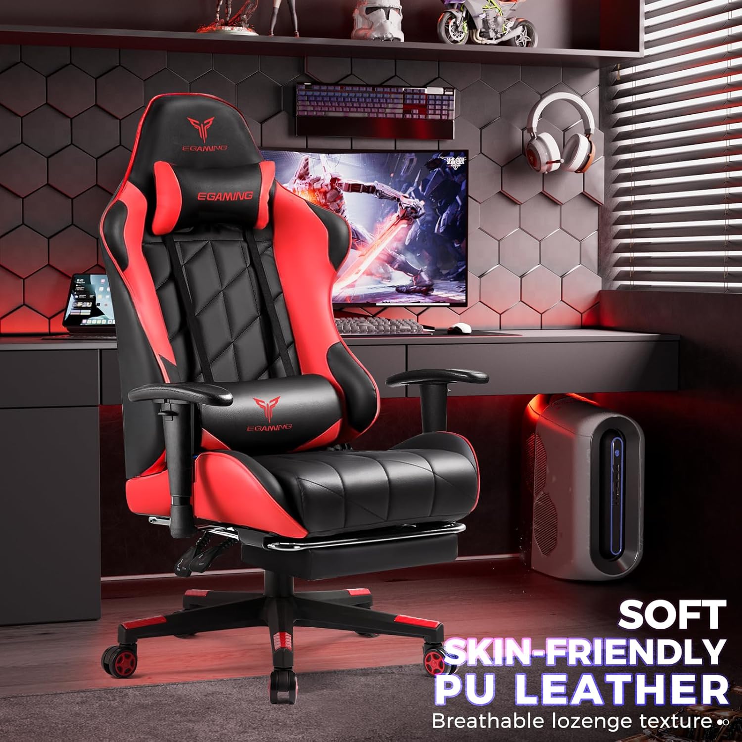 - High-Quality Materials: This high-back computer chair is well-crafted, we use high-quality PU leather material and embroidery to make the chair both functional and aesthetically pleasing. The chair has a weight capacity of 396 pounds, and its stable and sturdy material structure can provide support for gamers of all sizes. In addition, the upgraded support gas rod also extends the chair’s life expectancy .