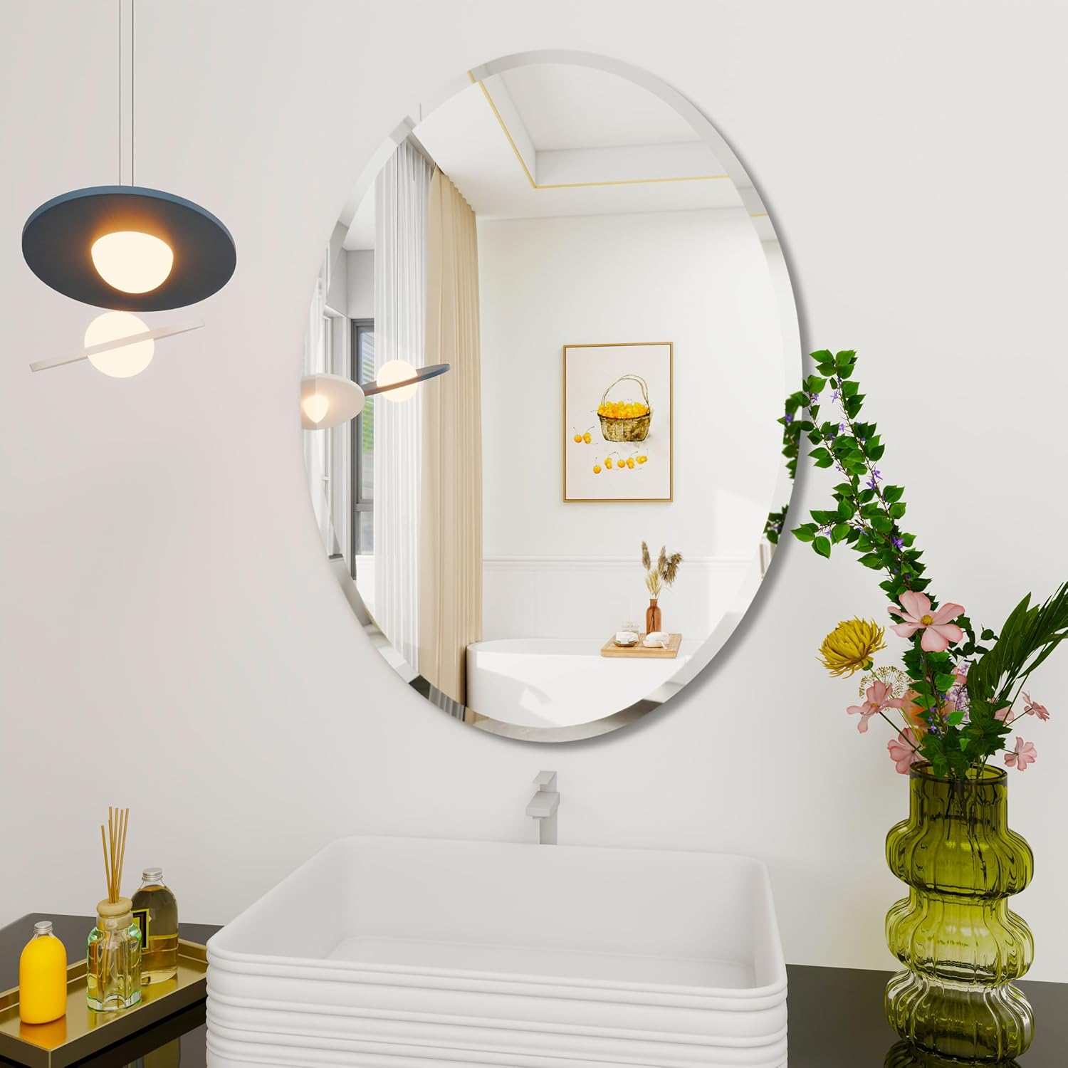 Oval Bathroom Mirror, 22X30 inch Oval Frameless Mirror, Frameless Mirrors for Bathroom,Beveled Bathroom Mirror.