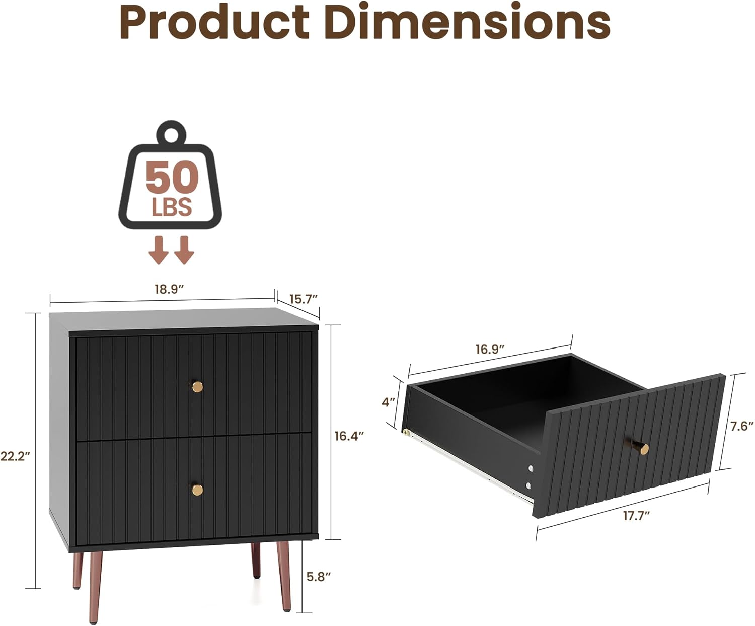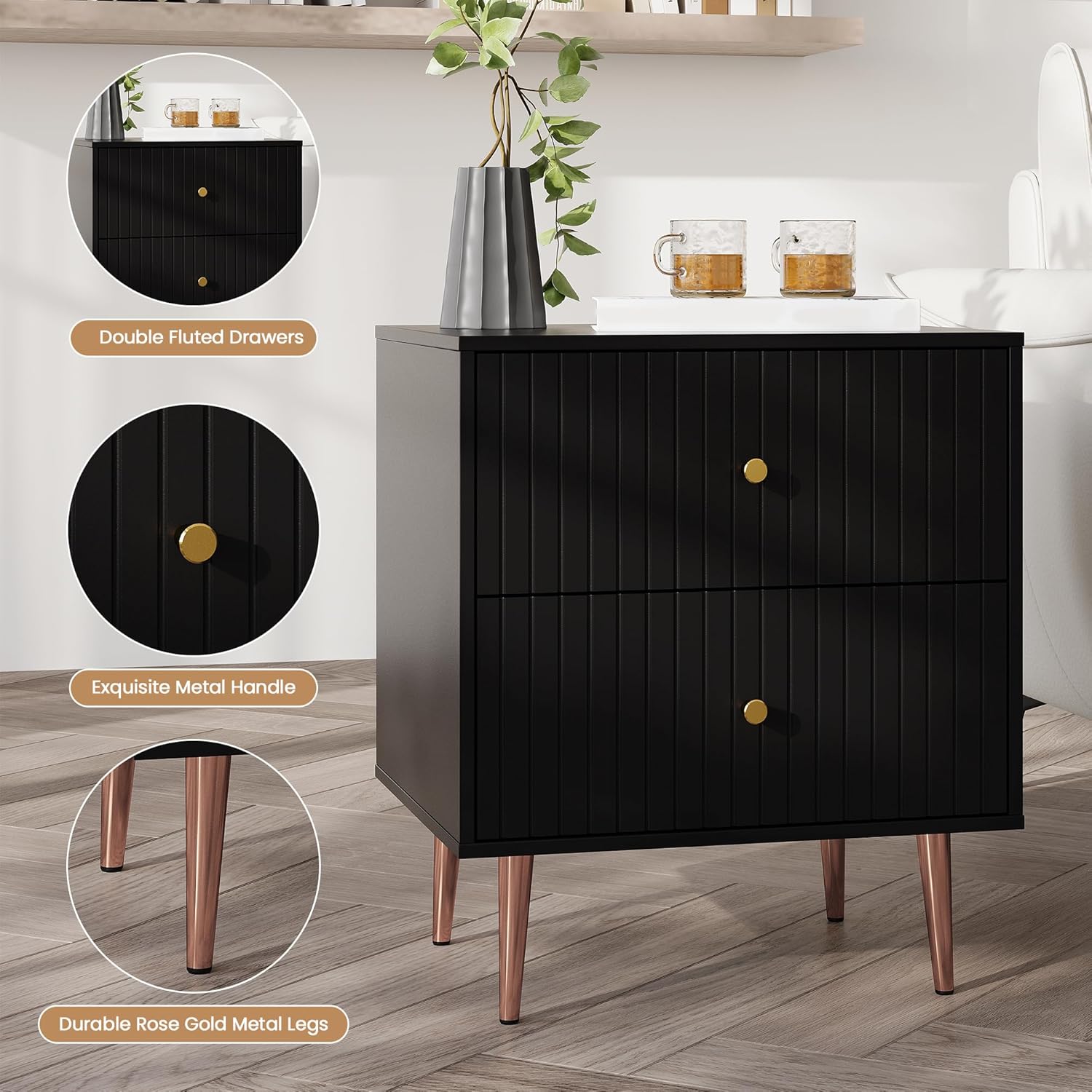 - ăChic Fluted DesignăWith its modern fluted elements,metal legs and handles,this black night stand set 2 is sure to catch your eye and bring a warm and inviting atmosphere to any room. The sleek and modern design makes it a versatile addition to any room in your home.