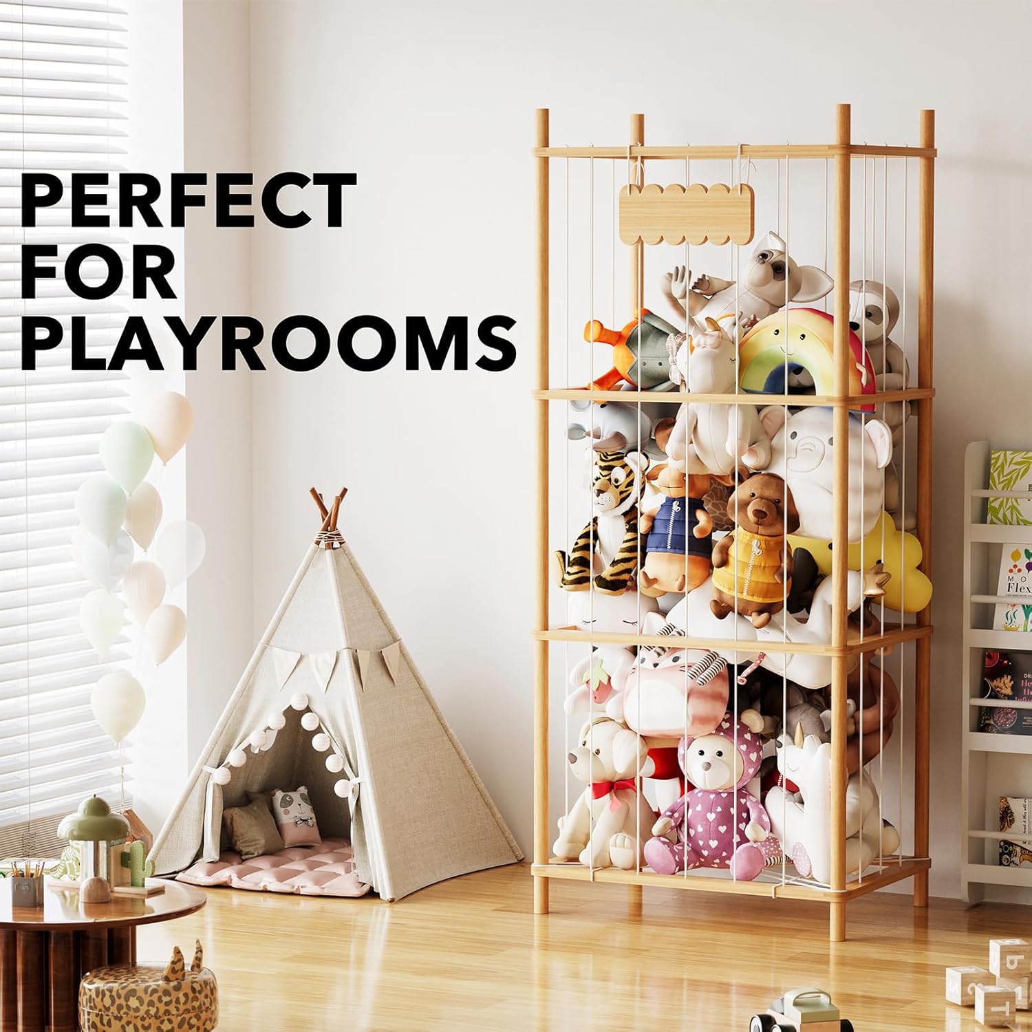 - EXTRA LARGE CAPACITY - The spacious toy storage organizer can hold lots of stuffed animals easily, keeping playroom area organized; The open cage design encourages kids to pick up and put away toys on their own; SIZE: 22.8"W x 15.8"D x 53.6"H