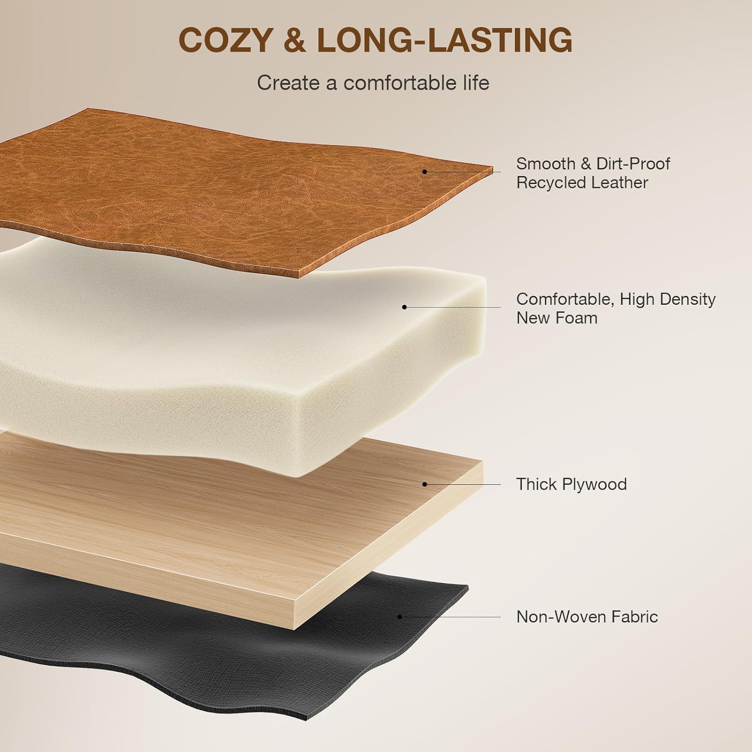 18-Inch Leather Vanity Stool Chair, Vanity Bench with Metal X-Leg, Ottoman Foot Stool with Thick Padded Saddle Seat, Brown