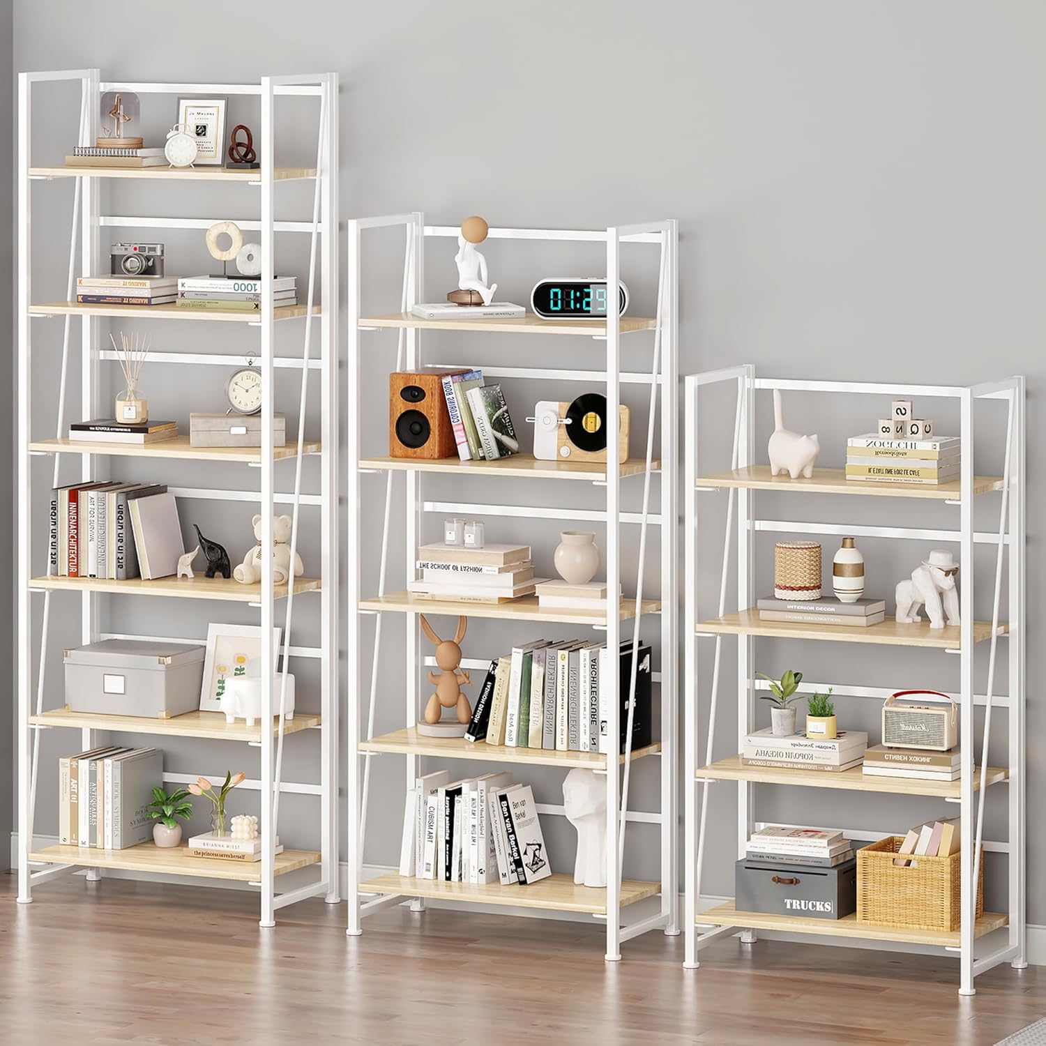 BHG Vintage Multifunctional Folding Bookshelf, No-Assembly Plant Stand Storage Rack Shelves for Home Office