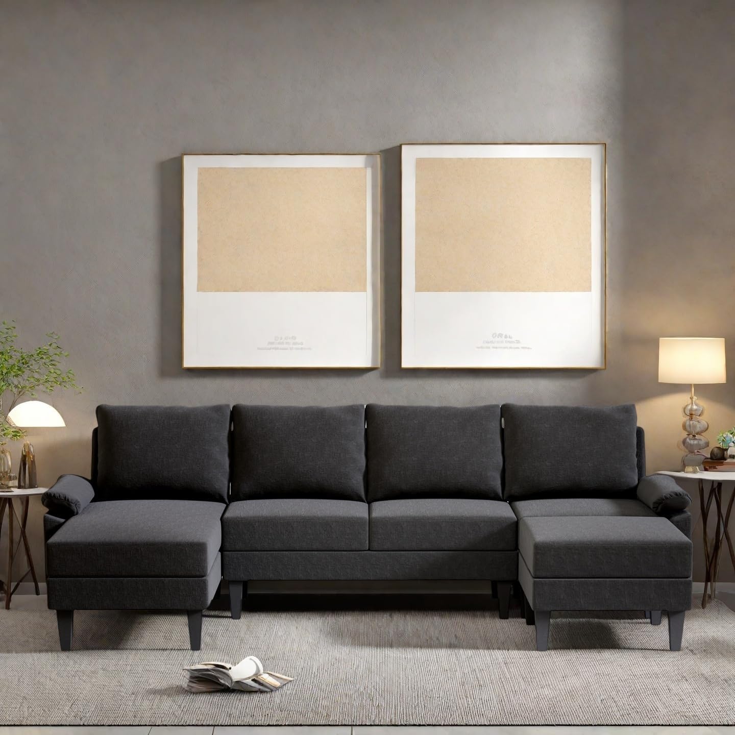 - Spacious U-Shaped Design: This 115-inch modular sectional comfortably seats 5 people, featuring a versatile U-shape layout with chaise and movable ottoman for flexible living room arrangements