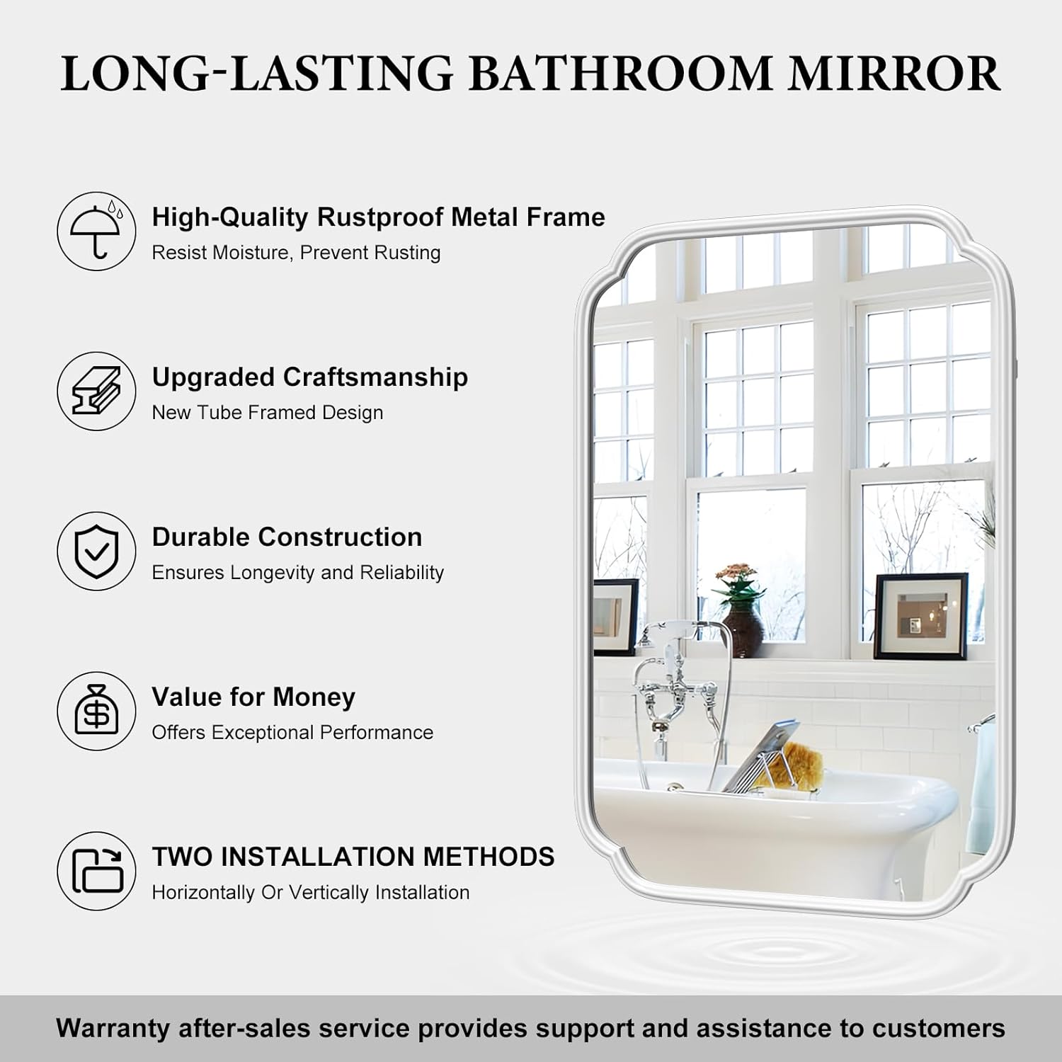- 【Timeless White Finish & Multi-Size Design】: Crafted in a sophisticated white color, this mirror complements modern, rustic, industrial, and farmhouse aesthetics. Available in multiple sizes to suit diverse spaces, it effortlessly adapts to bathrooms, bedrooms, living rooms, salons, or hotels, enhancing any decor style with its crisp, clean appeal