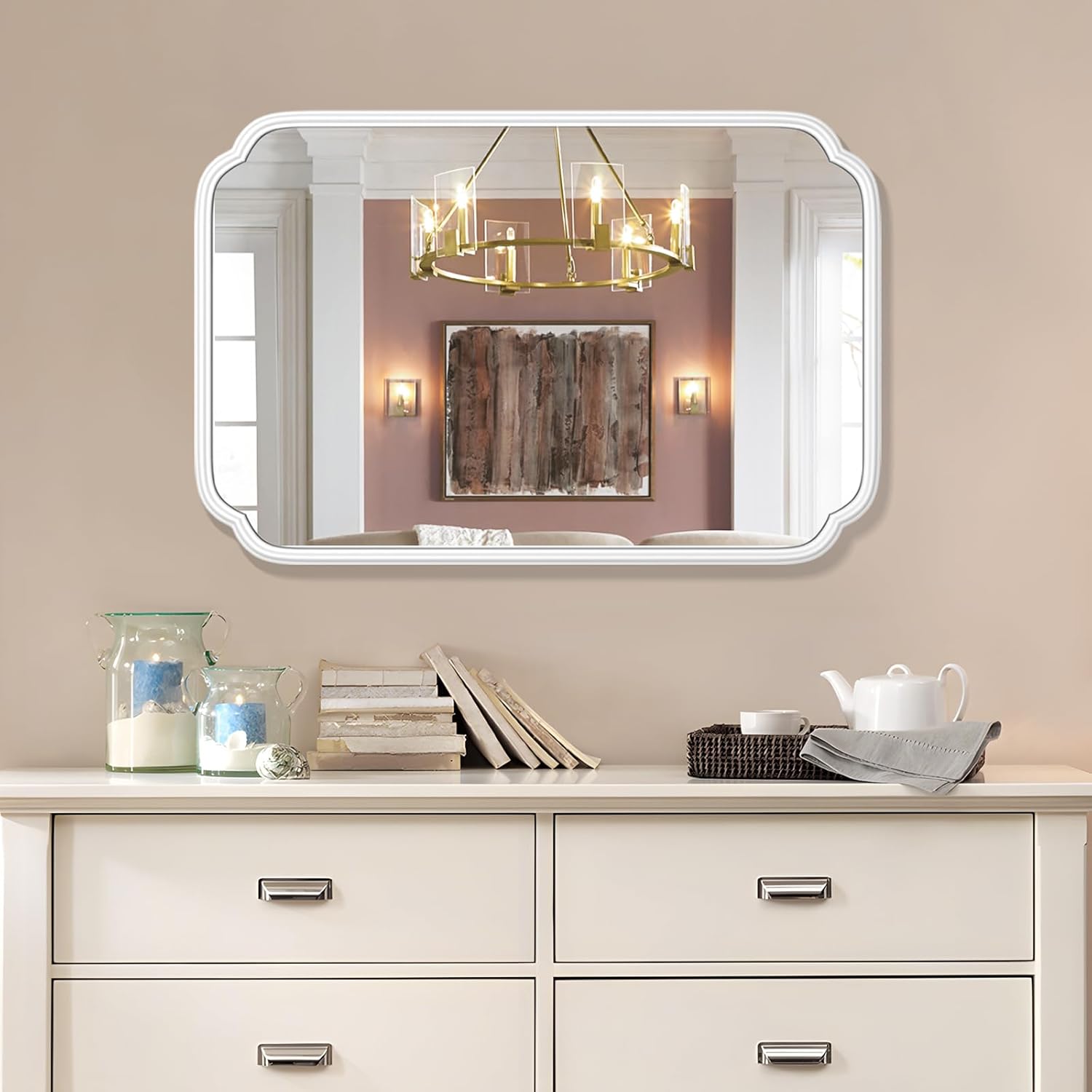 - 【Timeless White Finish & Multi-Size Design】: Crafted in a sophisticated white color, this mirror complements modern, rustic, industrial, and farmhouse aesthetics. Available in multiple sizes to suit diverse spaces, it effortlessly adapts to bathrooms, bedrooms, living rooms, salons, or hotels, enhancing any decor style with its crisp, clean appeal