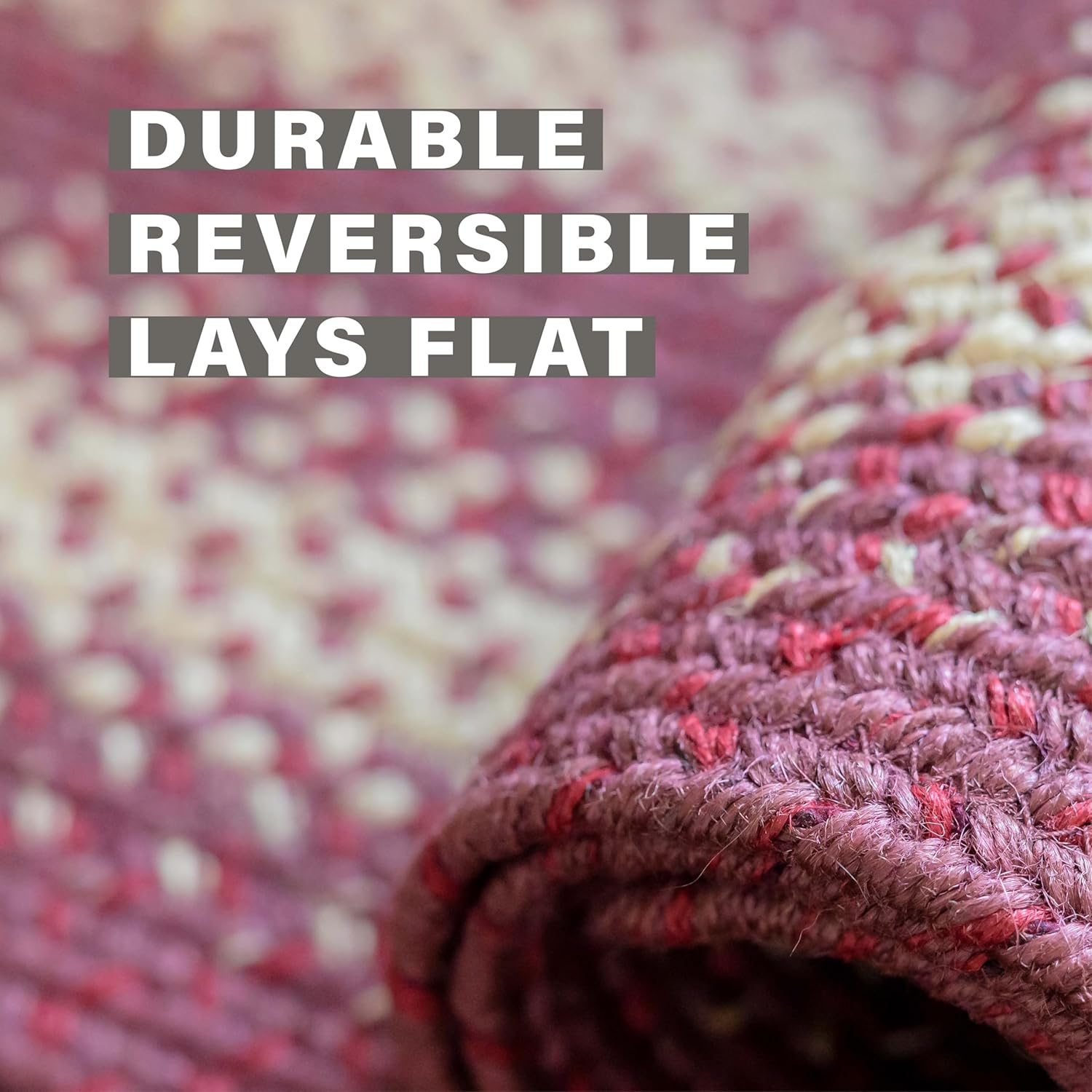 Autumn Maple Burgundy and Tan Braided Oval Rug, Jute, 4x6' - Rustic Primitive Decor for Entryway, Bedroom, Everywhere